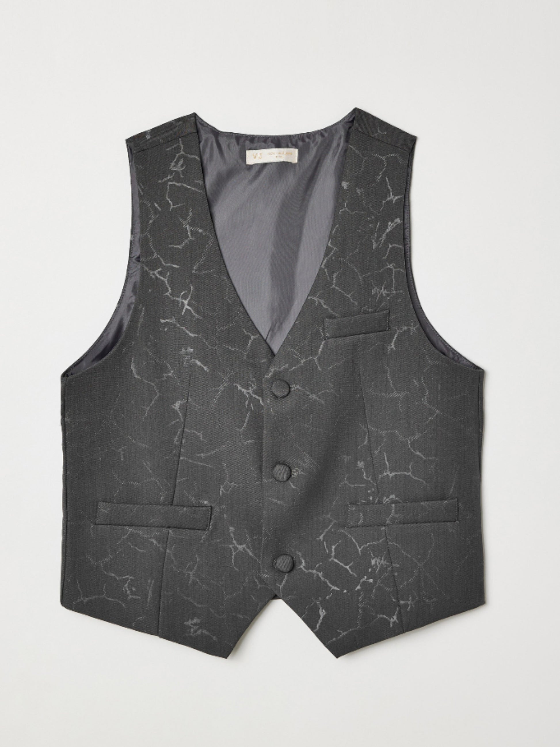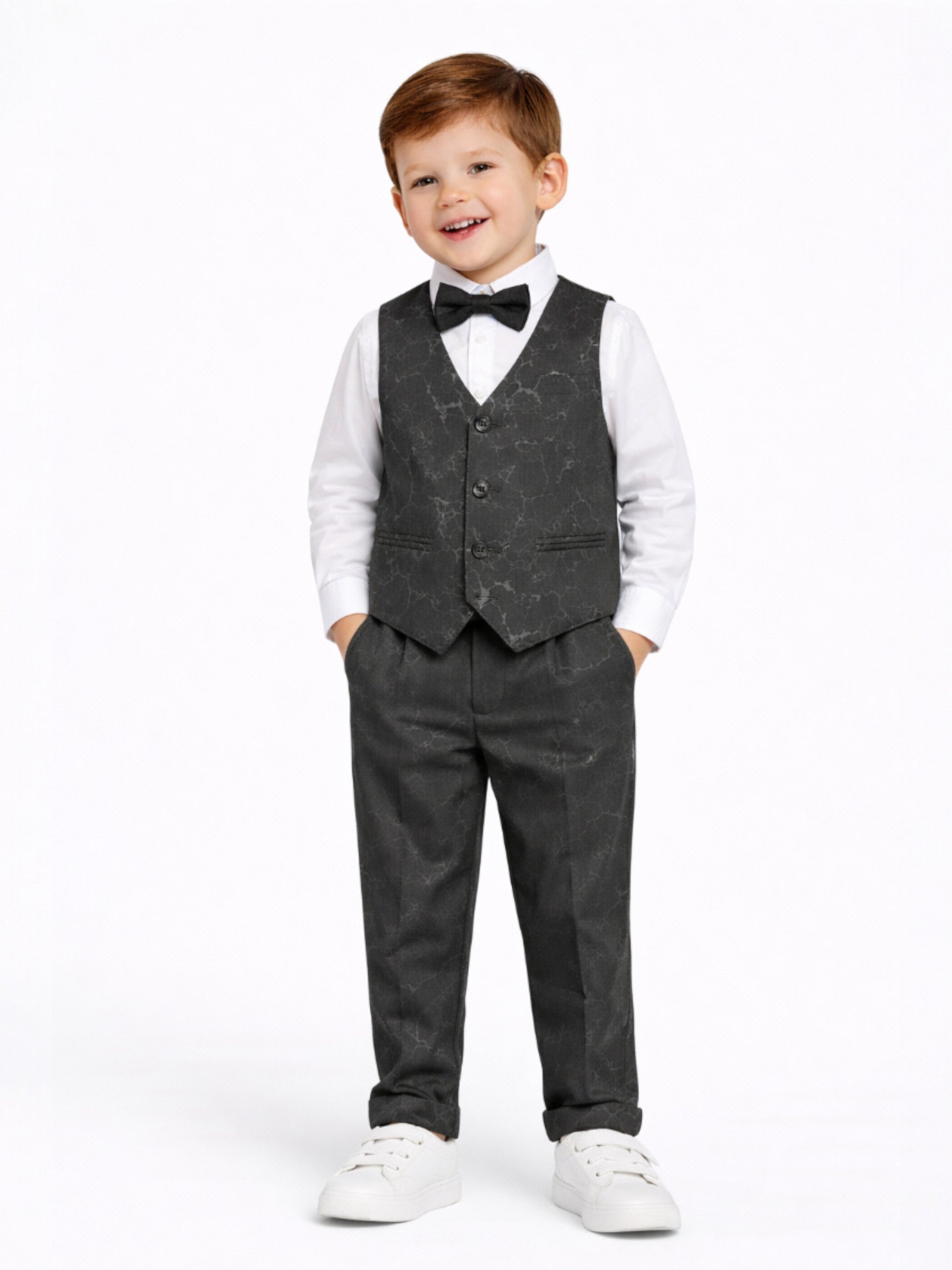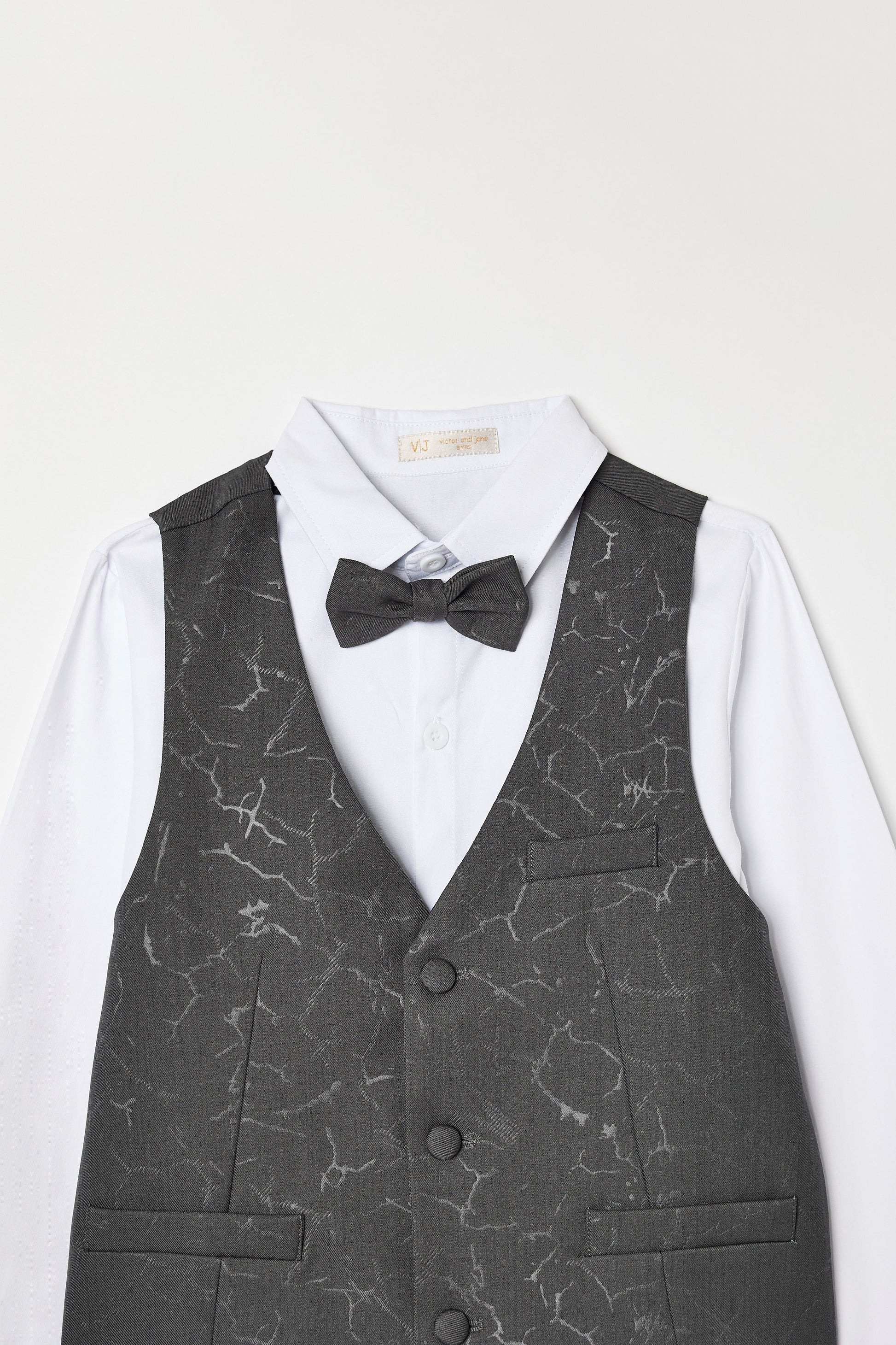 Boys 4 Pc Set Dark Grey Waistcoat, Shirt, Trousers & Bow Tie Set (3 Years–8 Years)