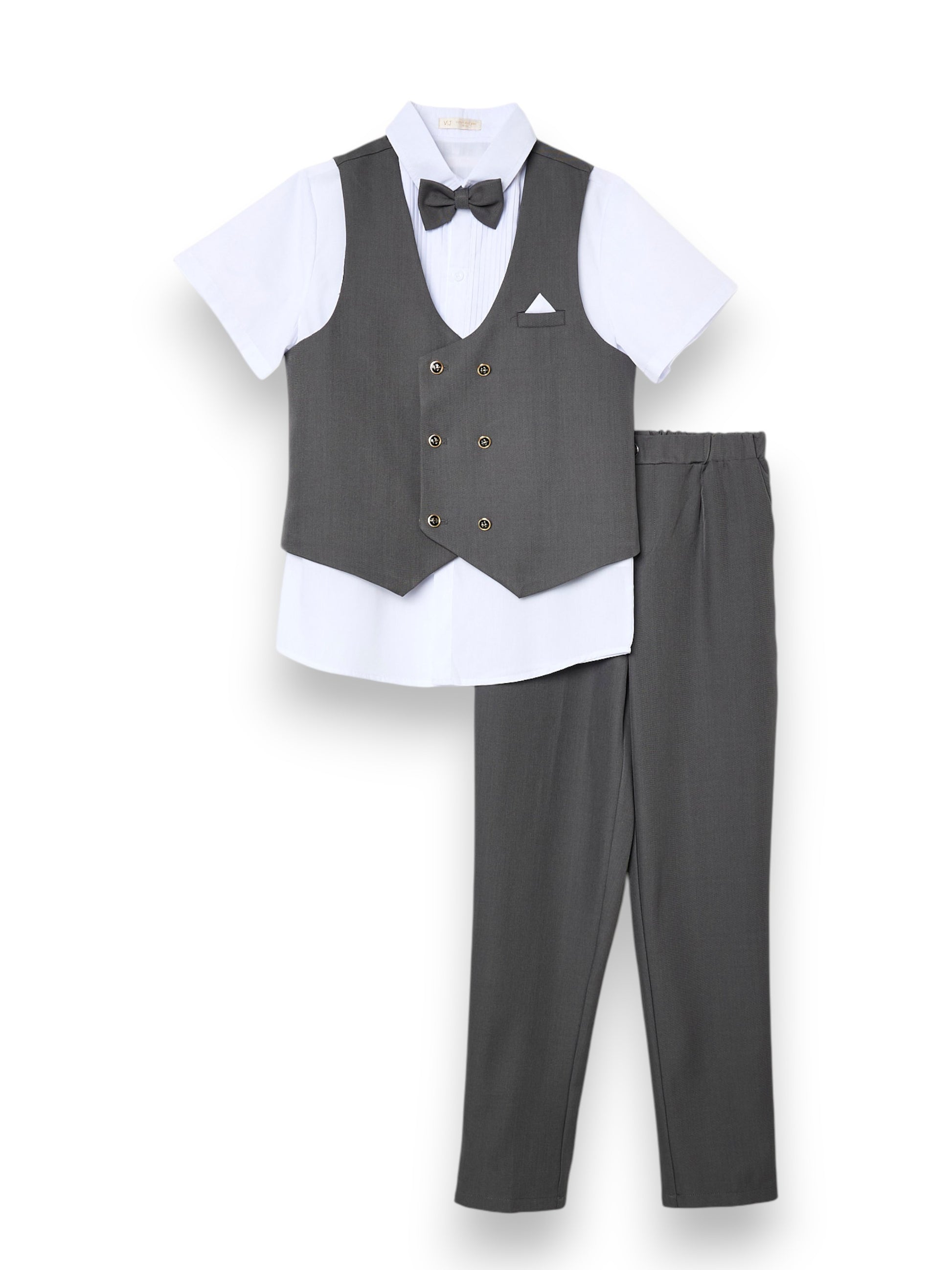 Boys 4 Piece Set Waistcoat, Shirt, Trousers & Bow Tie Set (3 Years–8 Years)