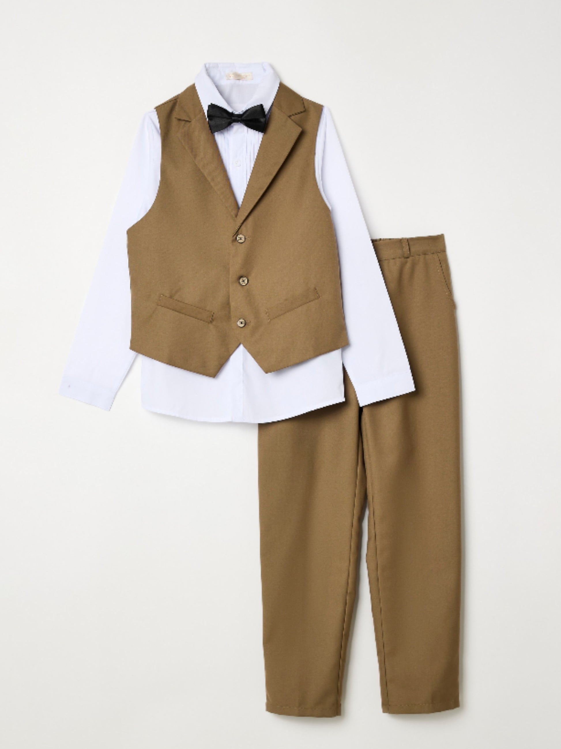 Brown Waistcoat, Shirt, Trousers & Bow Tie Set (3 Years–8 Years)