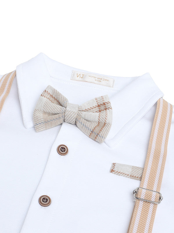 Infant Boys’ Shirt, Bow Tie & Suspenders Mock Romper Set