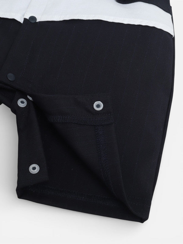 Dress him up in seconds with this Victor & Jane Infant Boys’ Mock Romper Set in classic navy blue. Designed to look like a complete waistcoat-and-shirt outfit, it features button detailing, a smart bow tie, and a pocket square effect for an occasion-ready finish. Comfortable for little ones and practical with snap fastenings, it’s the perfect choice for celebrations and picture-perfect moments.