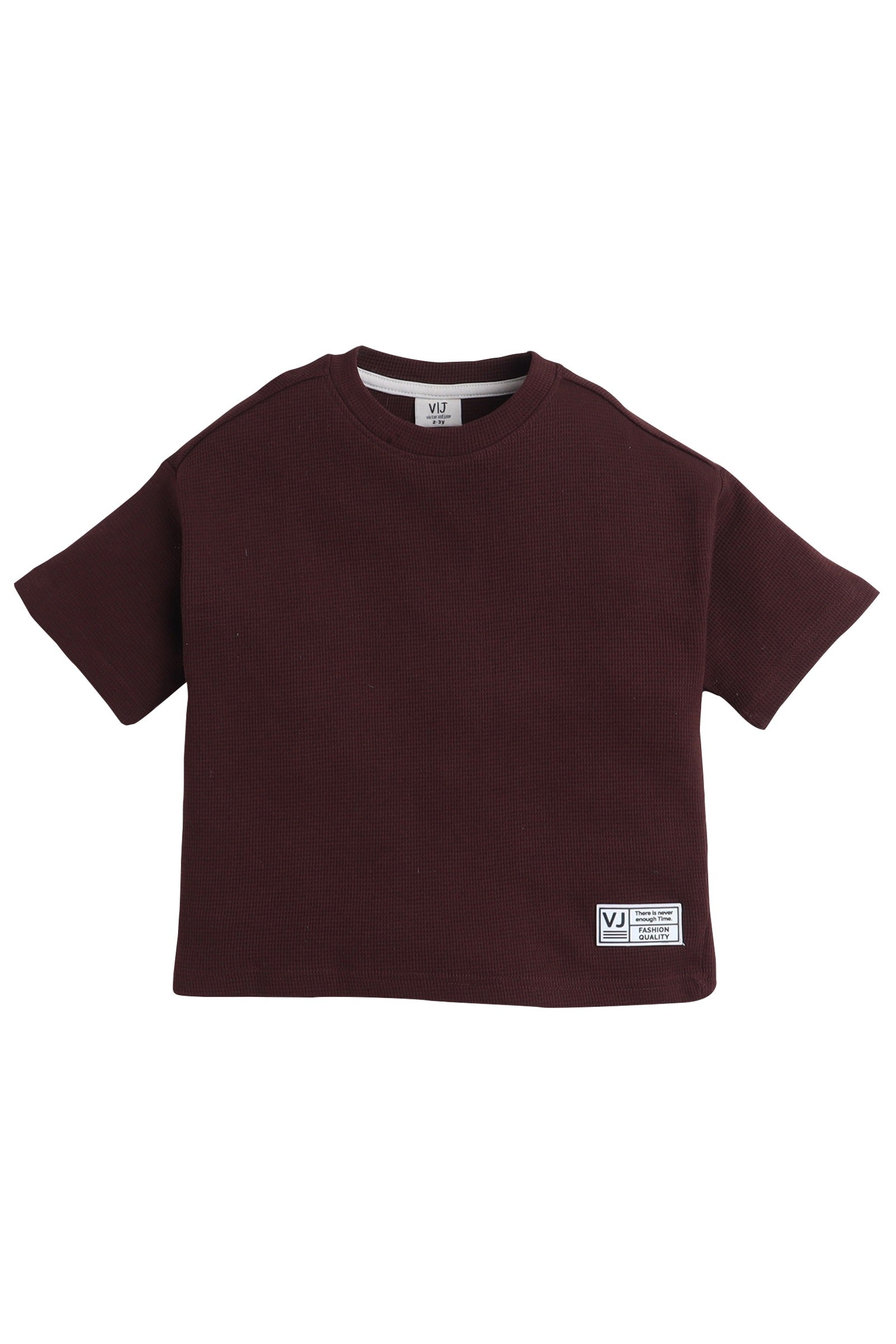Junior Boys Textured Cotton T-Shirt - Rust Red