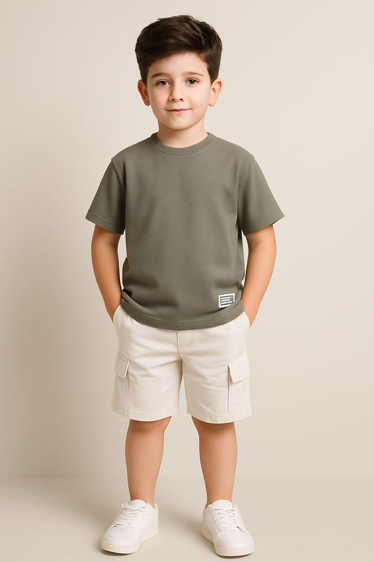 Junior Boys Textured Cotton T-Shirt - Olive Green