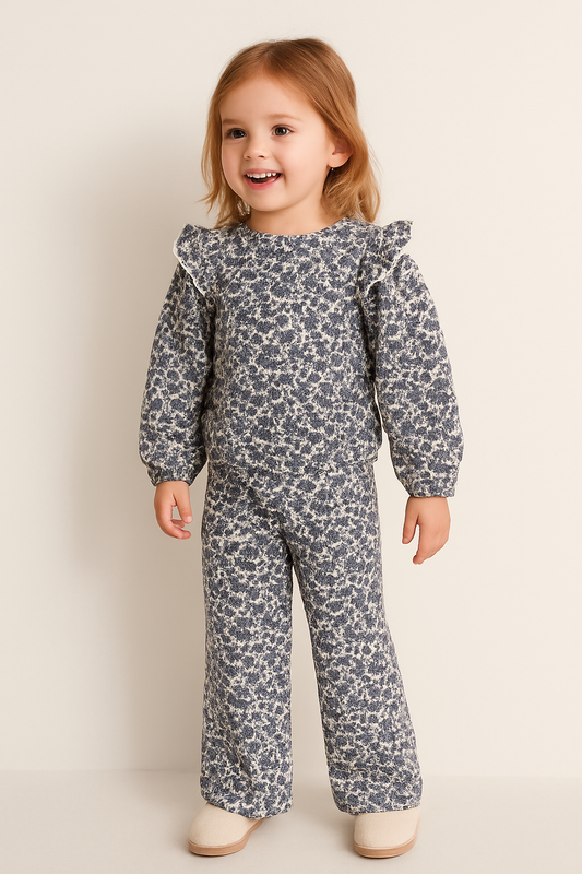 Dirkje Girls 2-Piece All-Over Floral Blouse and Flared Pant Set