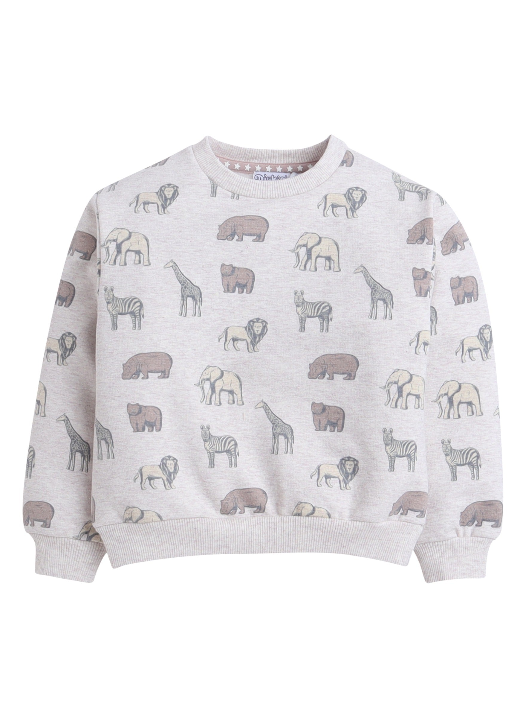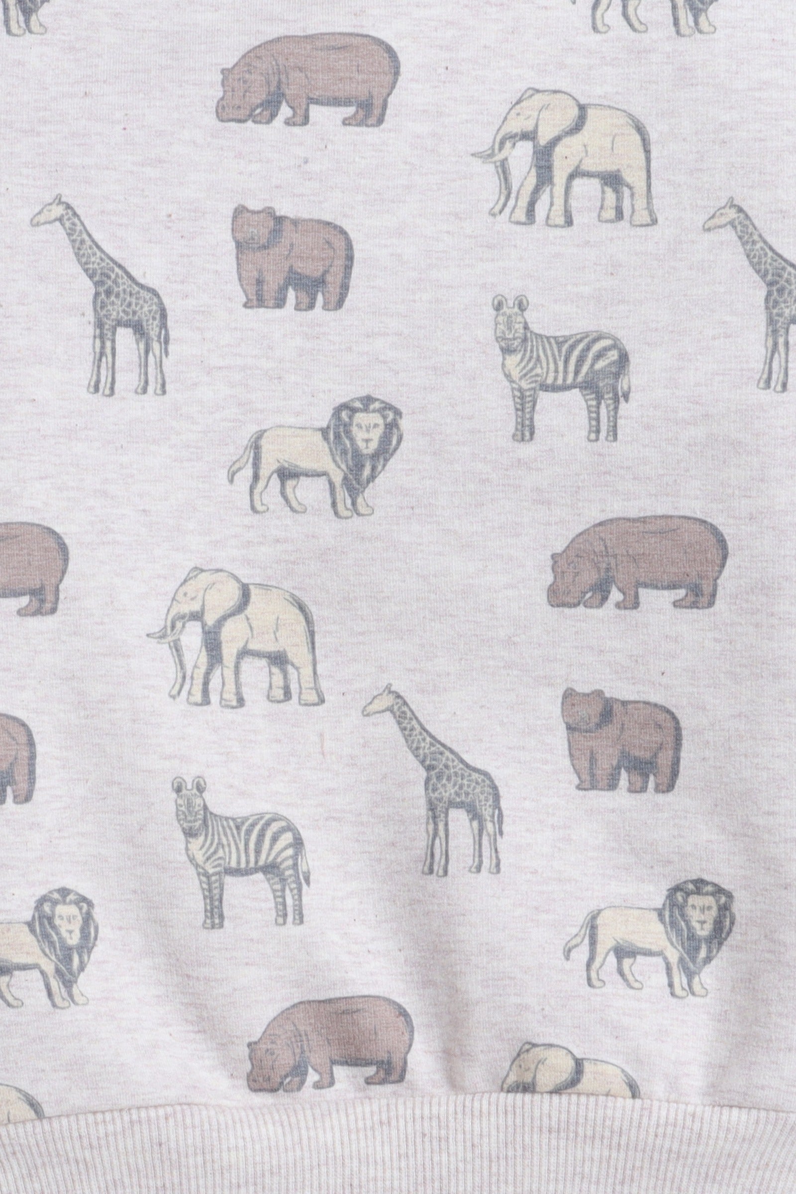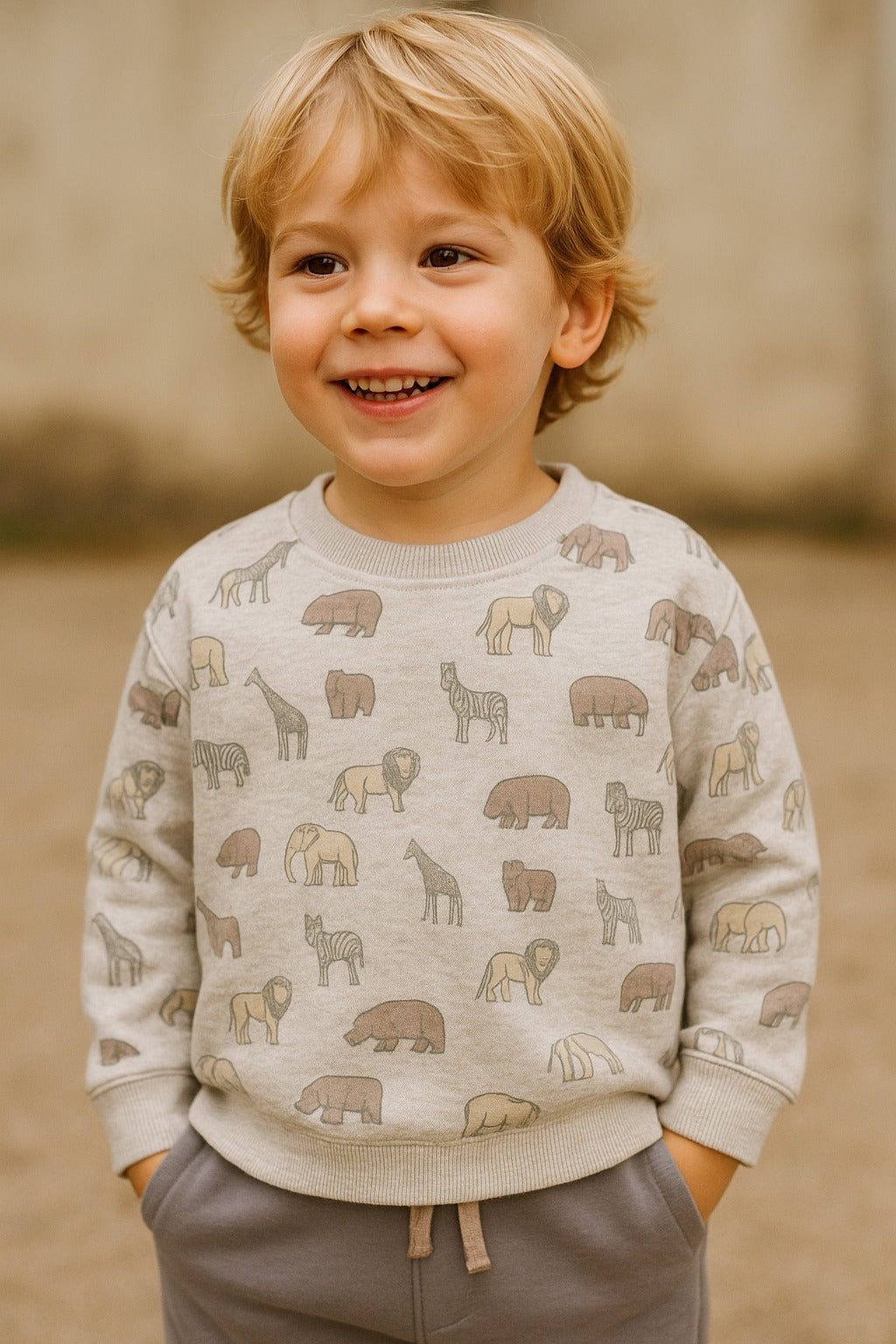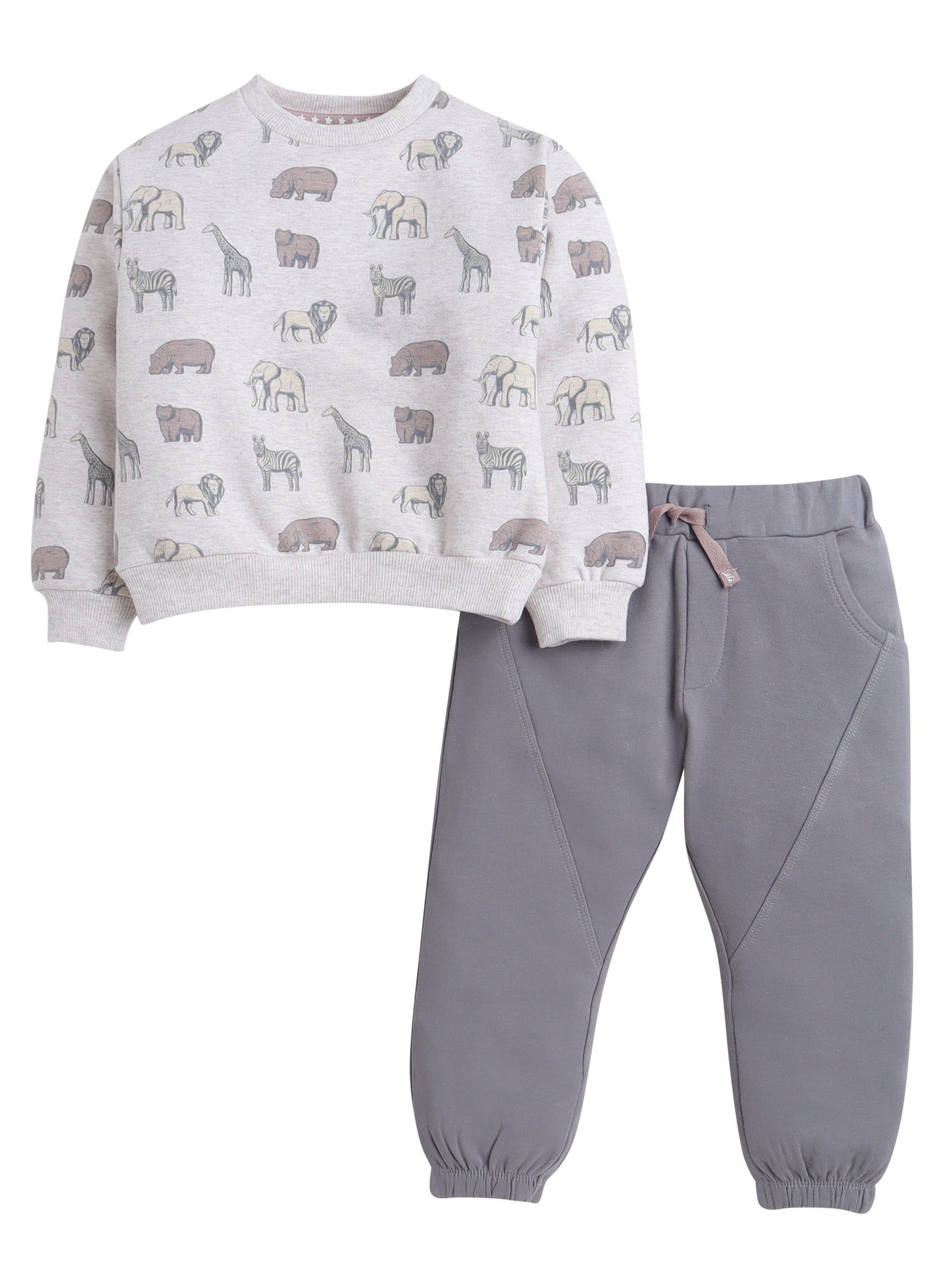 Boys Safari Print Fleece Tracksuit – Sand & Heather Grey 2-Piece Set