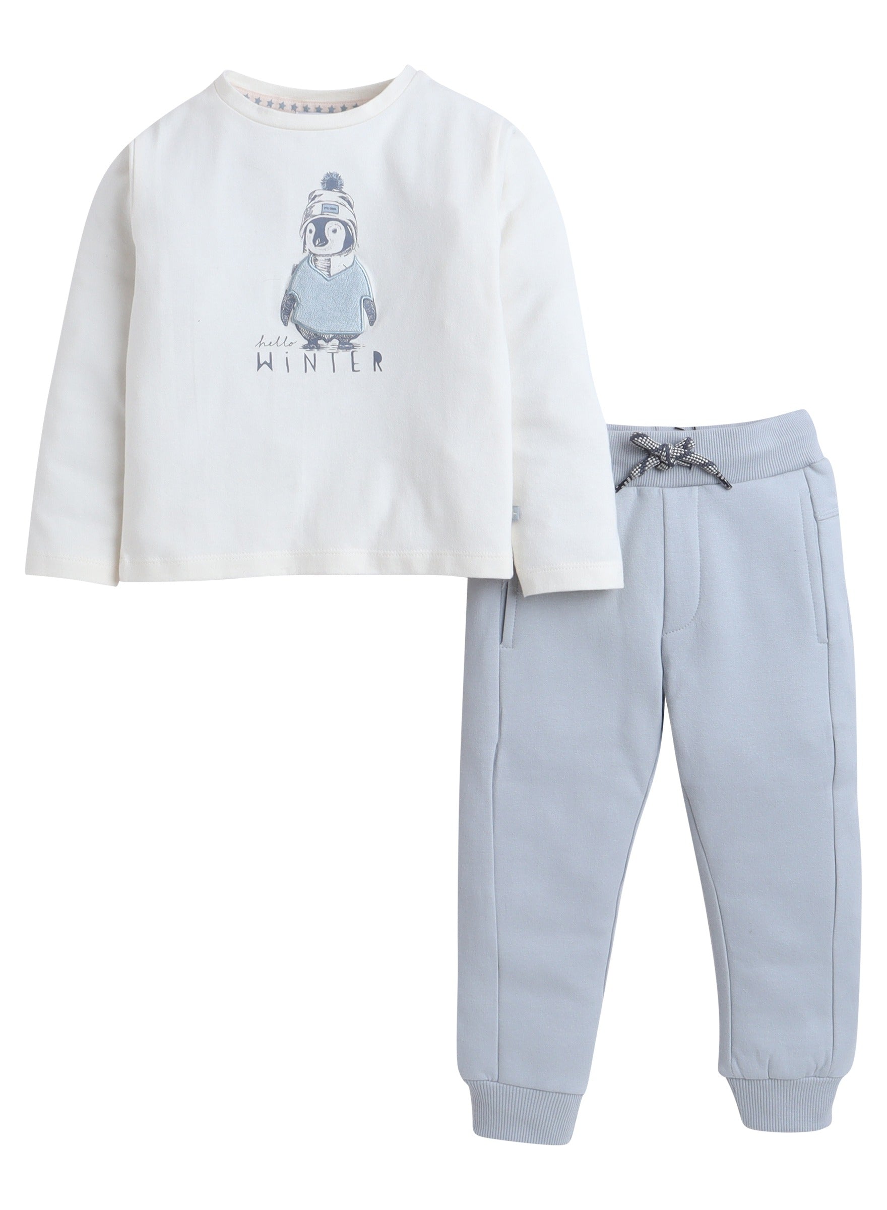 Dirkje Hello Winter Penguin Tee & Light Grey Joggers Set