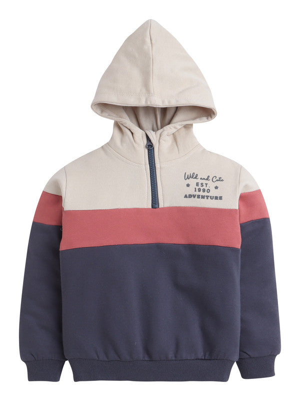 Boys Colorblock Fleece Tracksuit – Cream, Terracotta & Grey 2-Piece Set