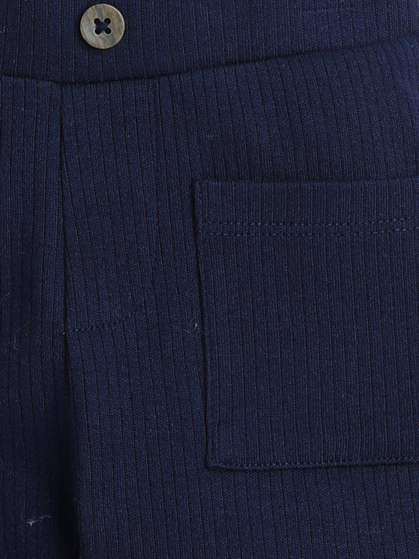 Snug Ribbed Leggings: Pull-on navy bottoms with stretchy waistband and ankle cuffs for secure wear