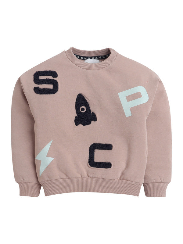 Boys Space Patch Fleece Tracksuit – Sand- 2-Piece Set