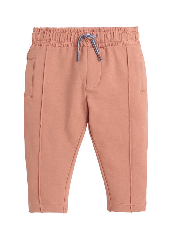 Comfort-Fit Joggers: Sand-tone pull-on pants featuring an elastic-drawcord waist, side pockets, and ribbed ankle cuffs