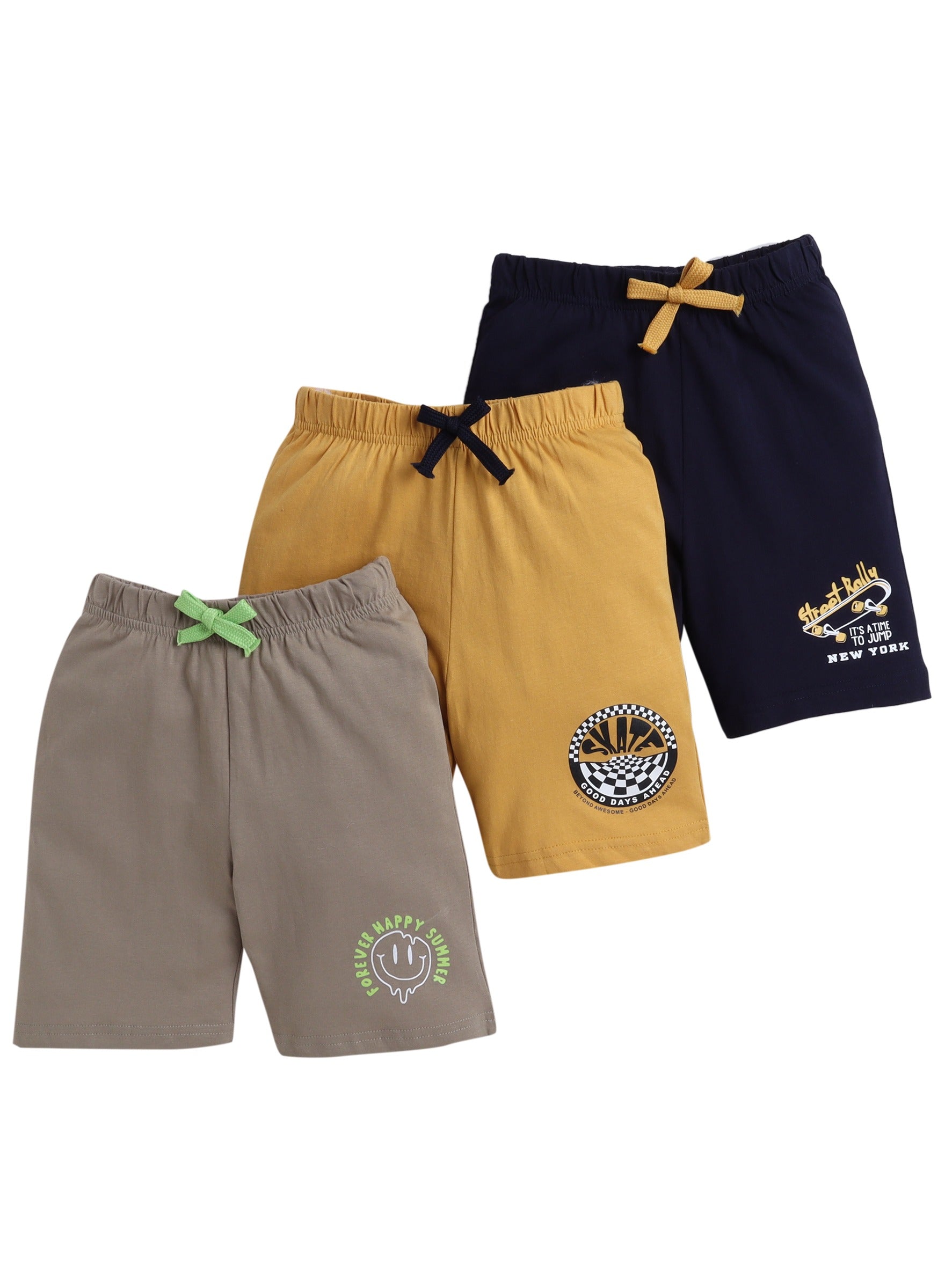 Boys' Slogan Print Shorts with Lace-up and Elasticated waist - pack of 3