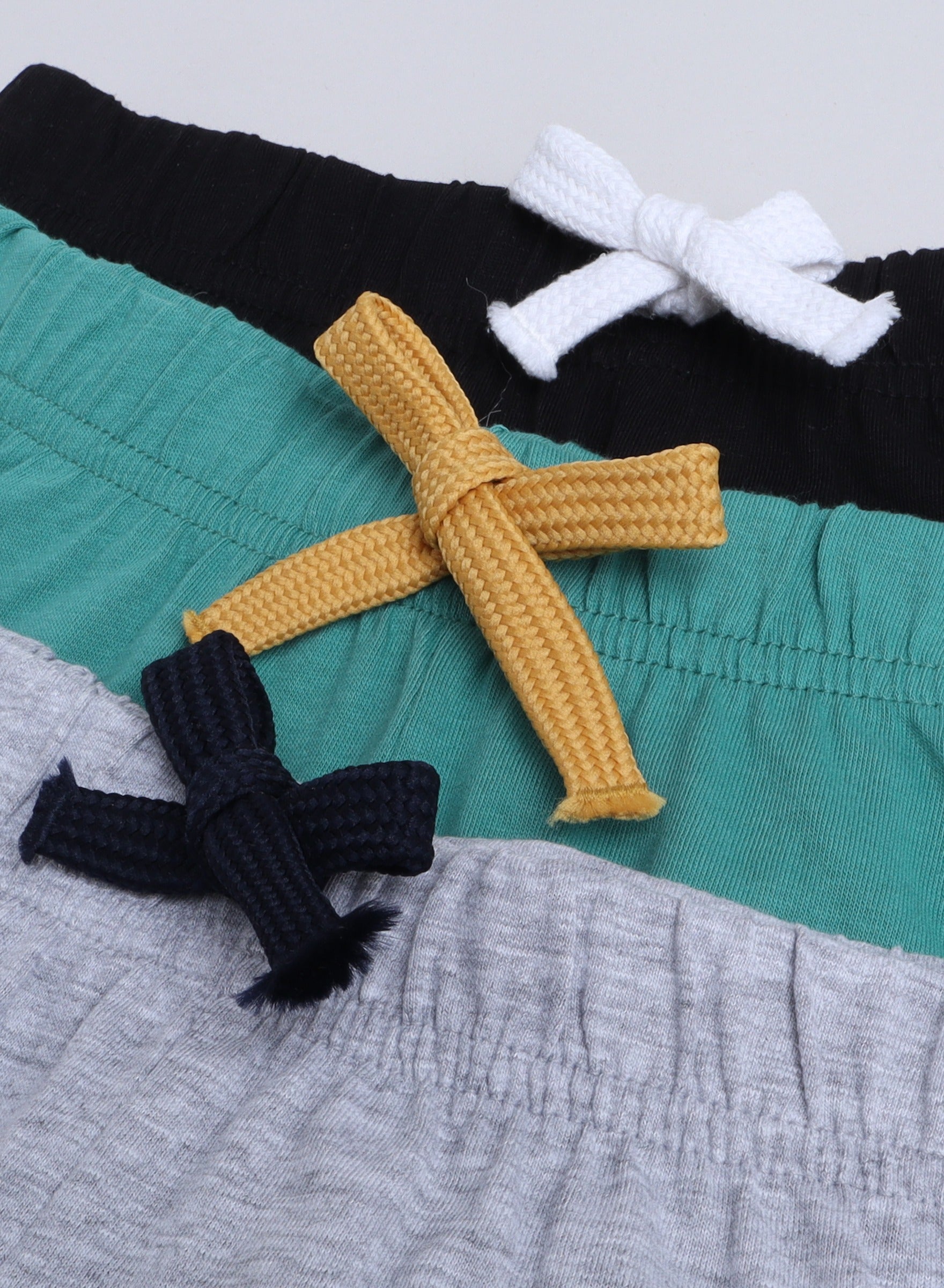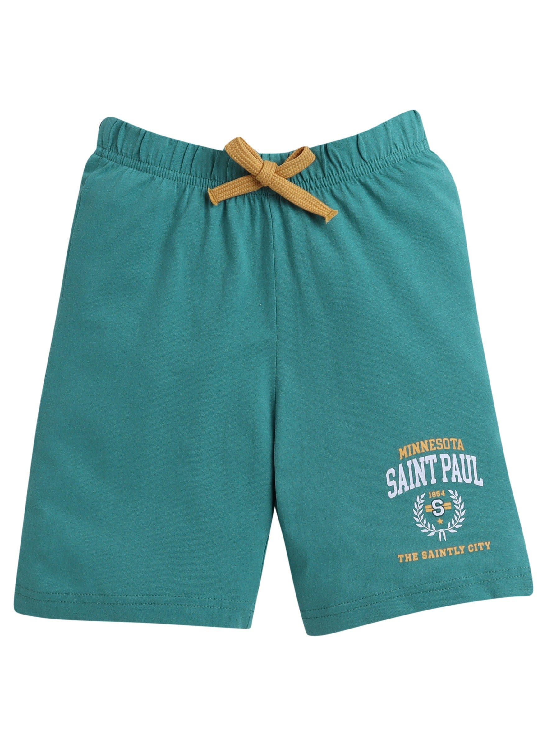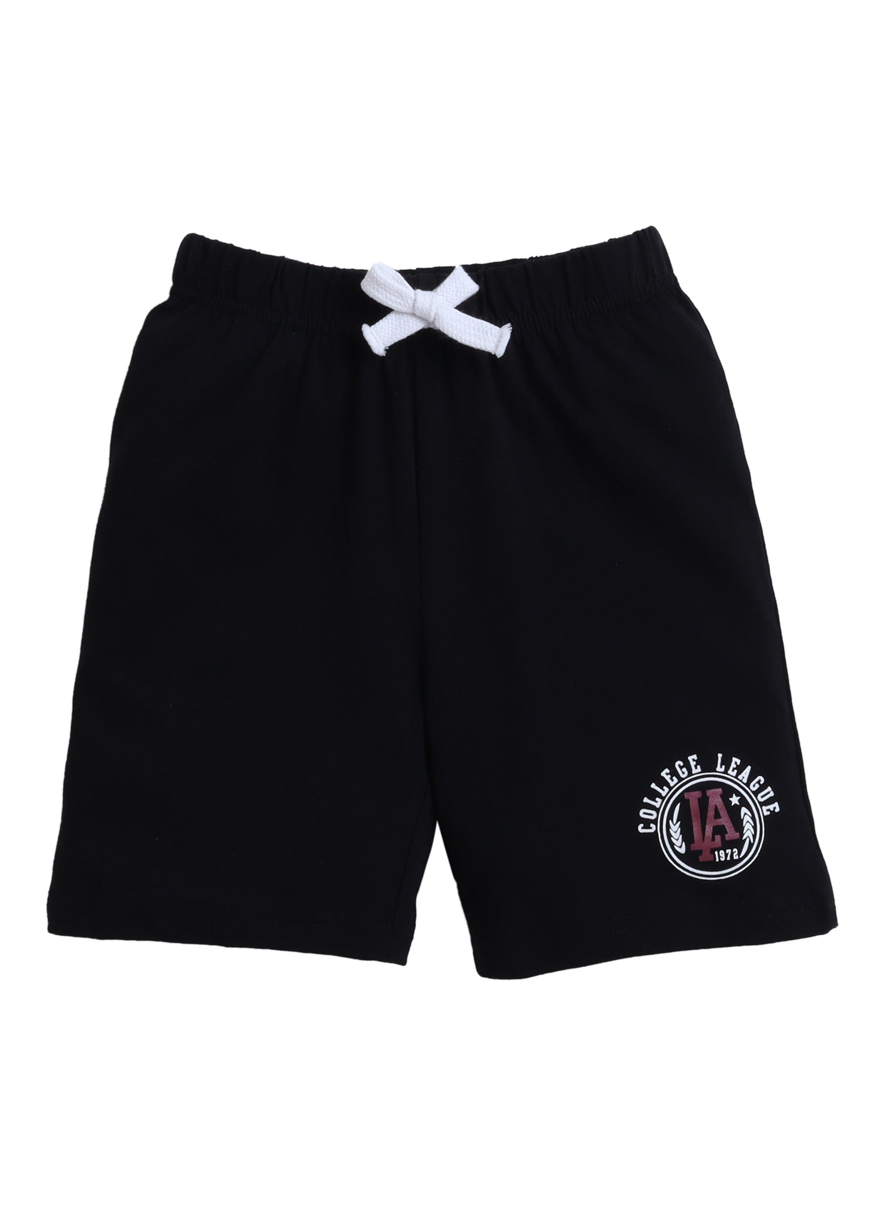 Boys' Slogan Print Shorts Black, Cotton Material, Comfortable Lace-Up Waist Pull-On Design, 2-3YRS