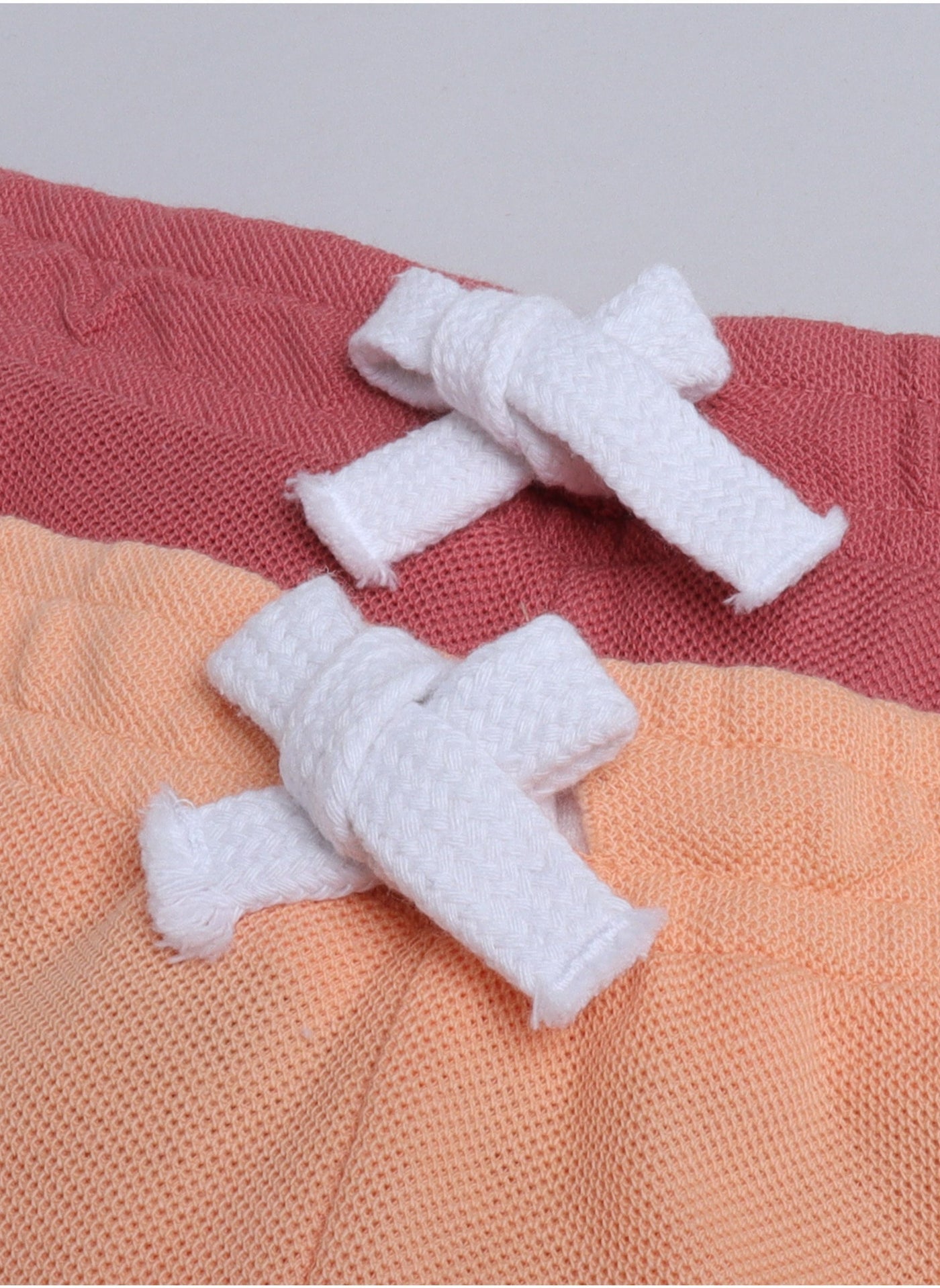 Victor and Jane Junior Boys' Slogan Print Shorts Solid , Lace-Up and Elasticated Waist - Peach and Coral- Pack of 2