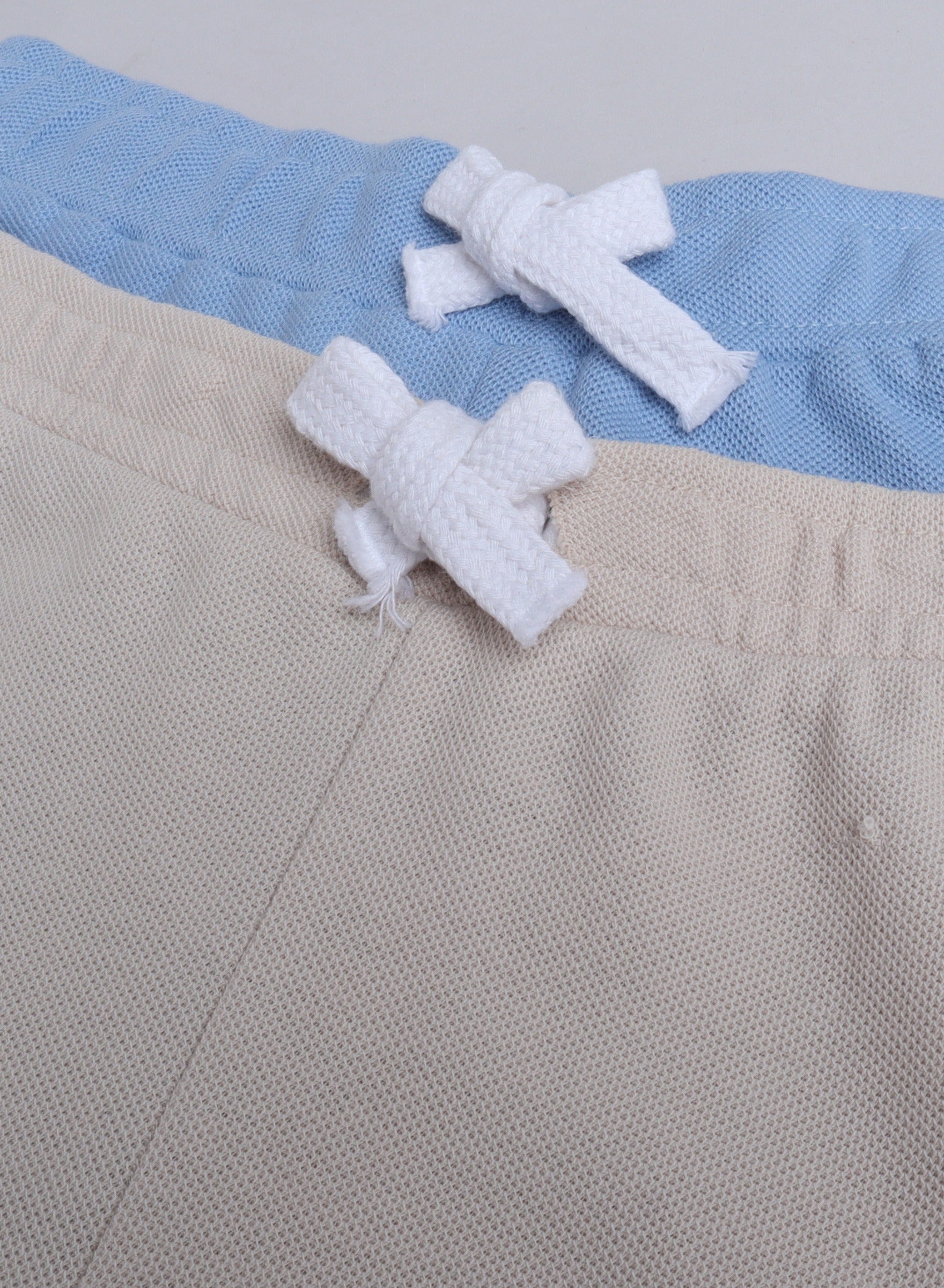 Victor and Jane Junior Boys' Slogan Print Shorts Solid , Lace-Up and Elasticated Waist - Beige and Light Blue- Pack of 2