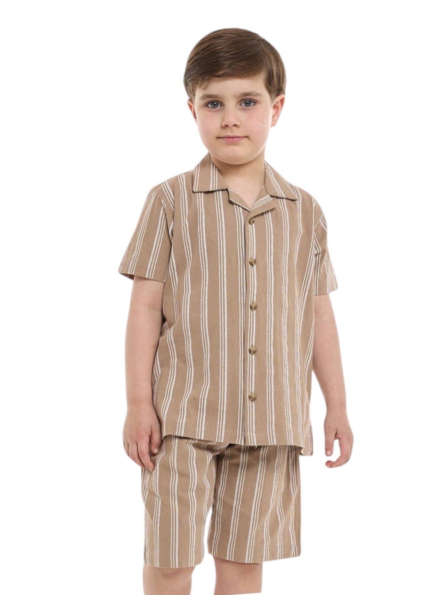 Boys' Casual Cotton Shirt & Shorts Set – Short Sleeve Outfit - Beige