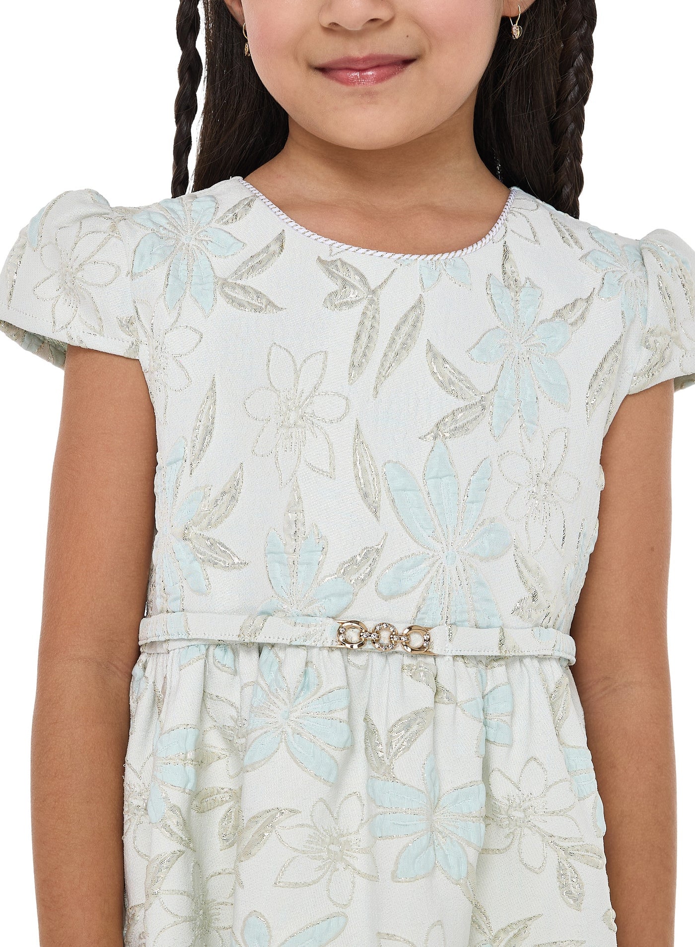 Girls Elegant Green/Gold Jacquard & Tulle Party Dress