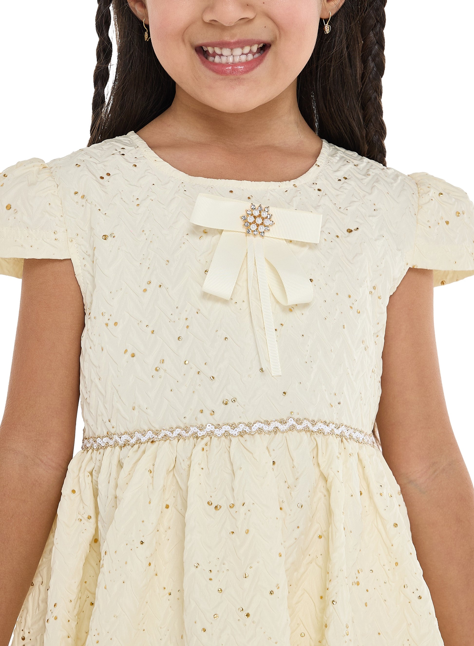Lemon/Gold Bow Jacquard Dress