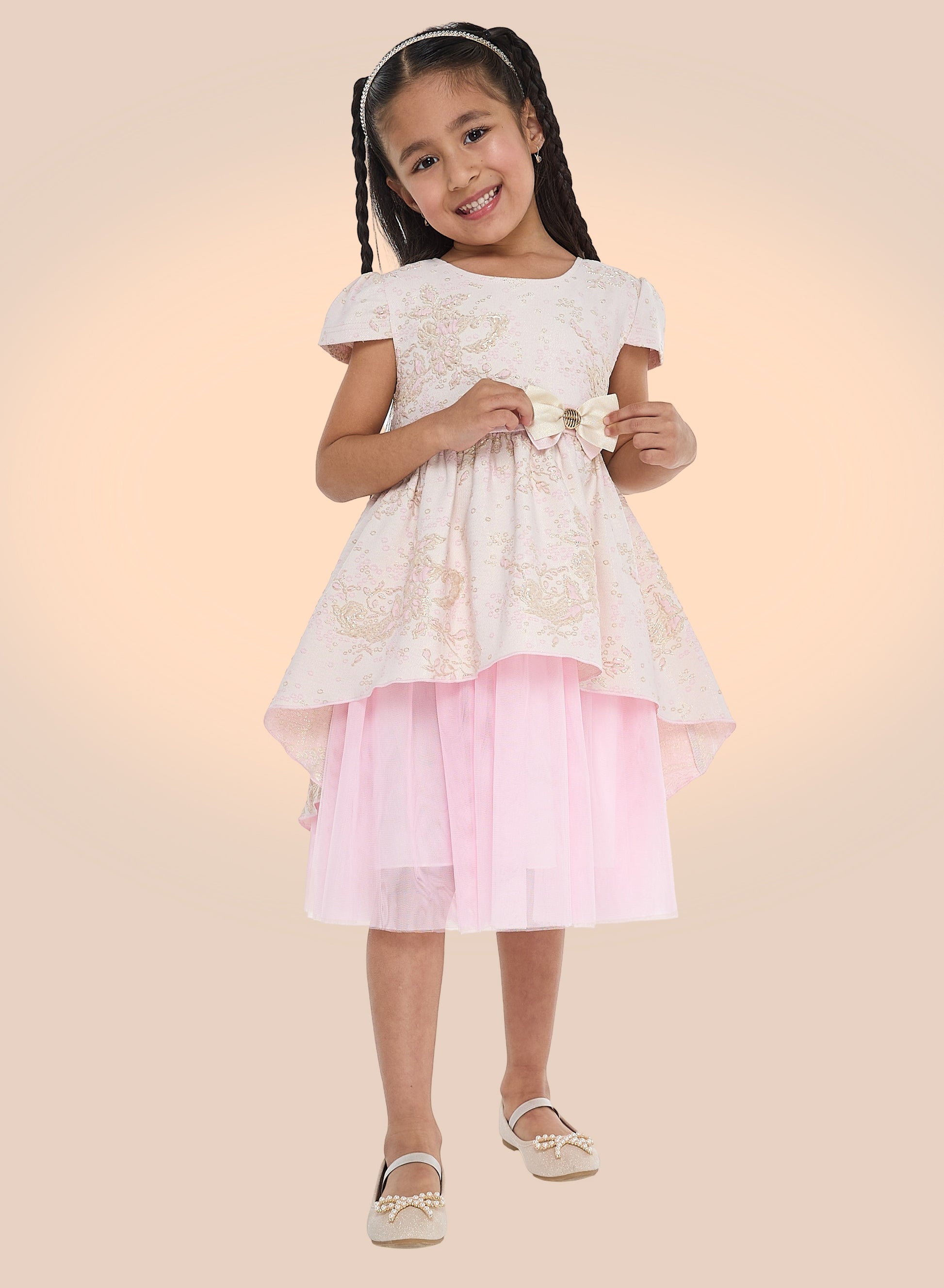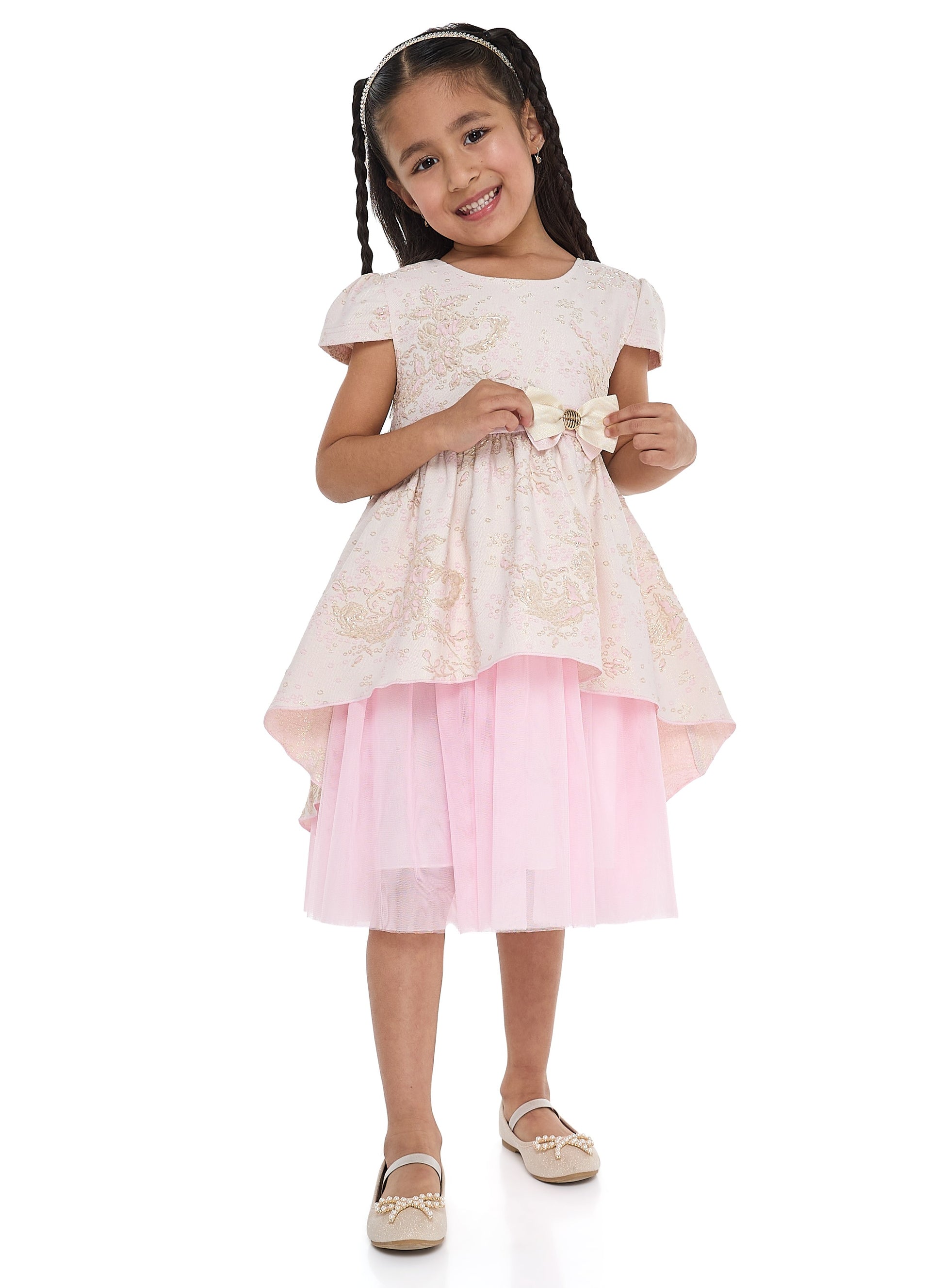 Girls Elegant Lt Pink/Gold Jacquard & Tulle Party Dress