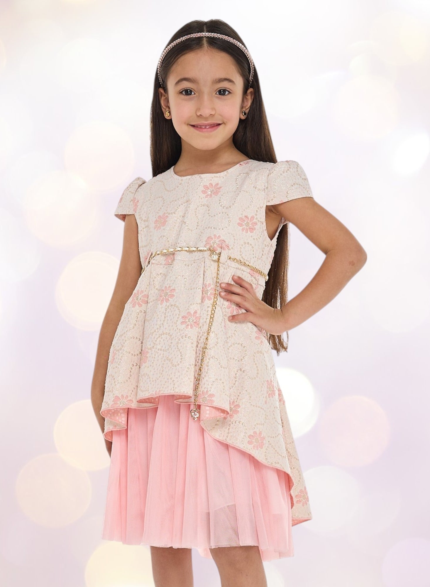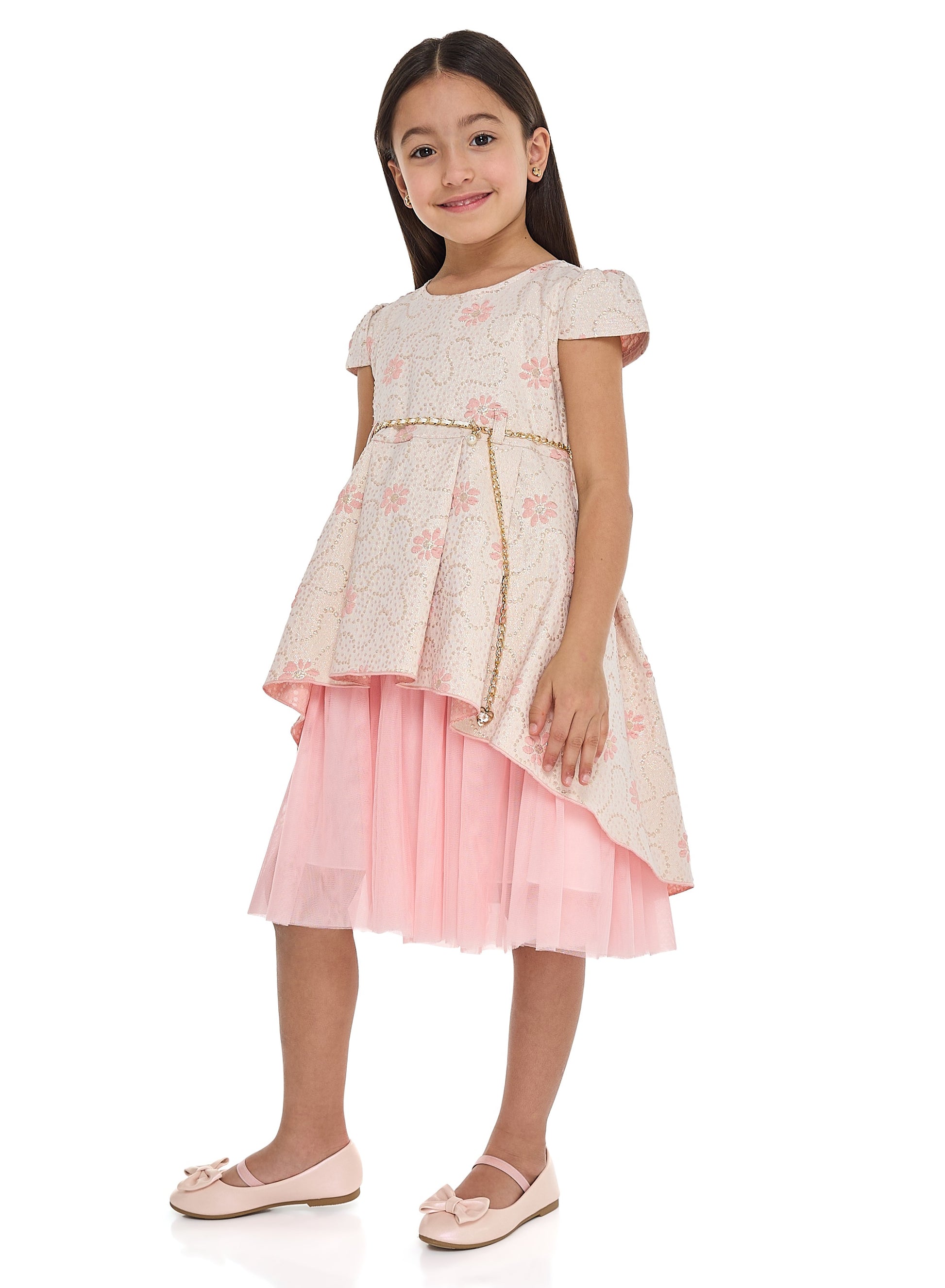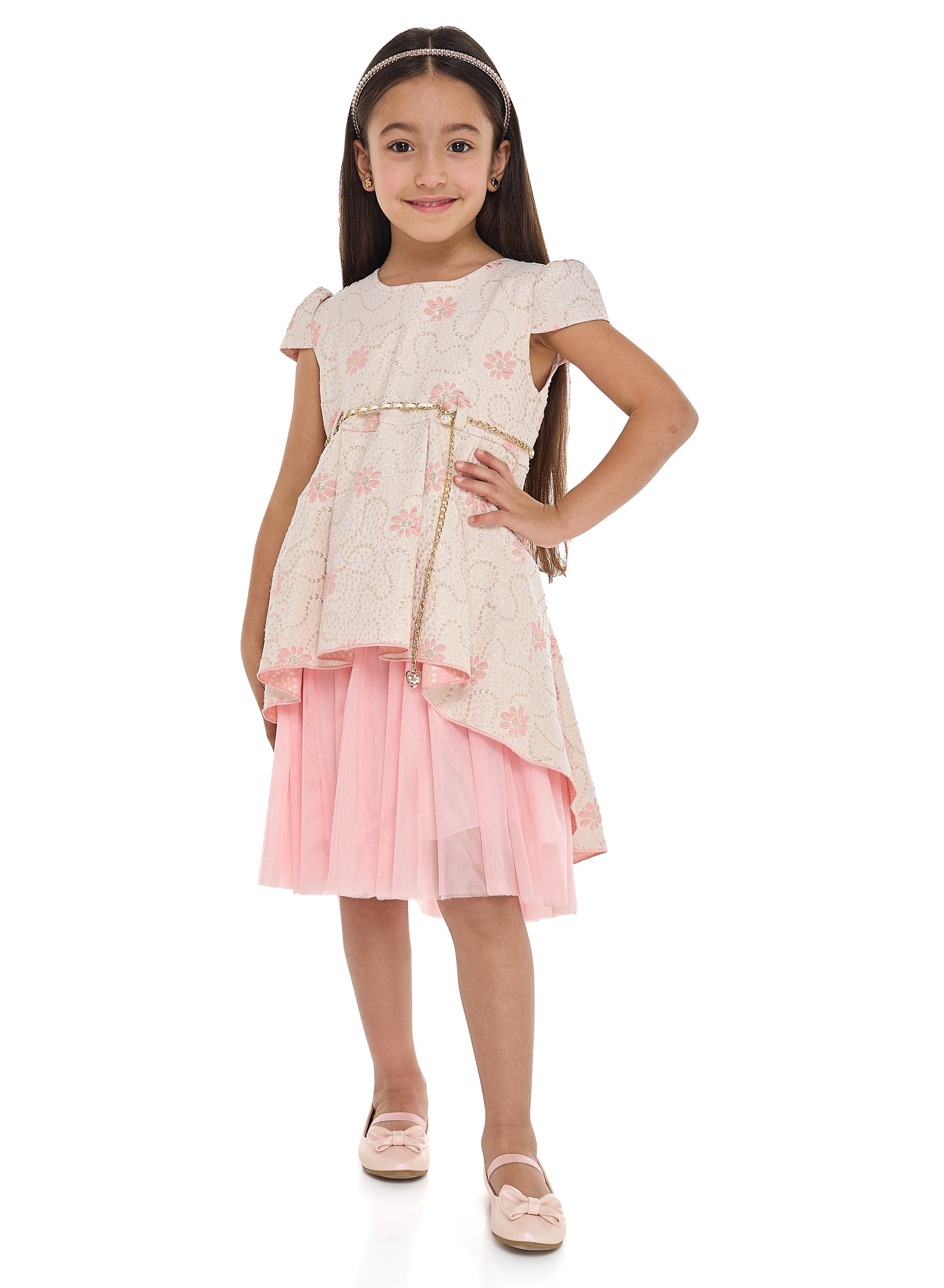 Chic Jacquard Peach Party Dress With Mesh & Decoration