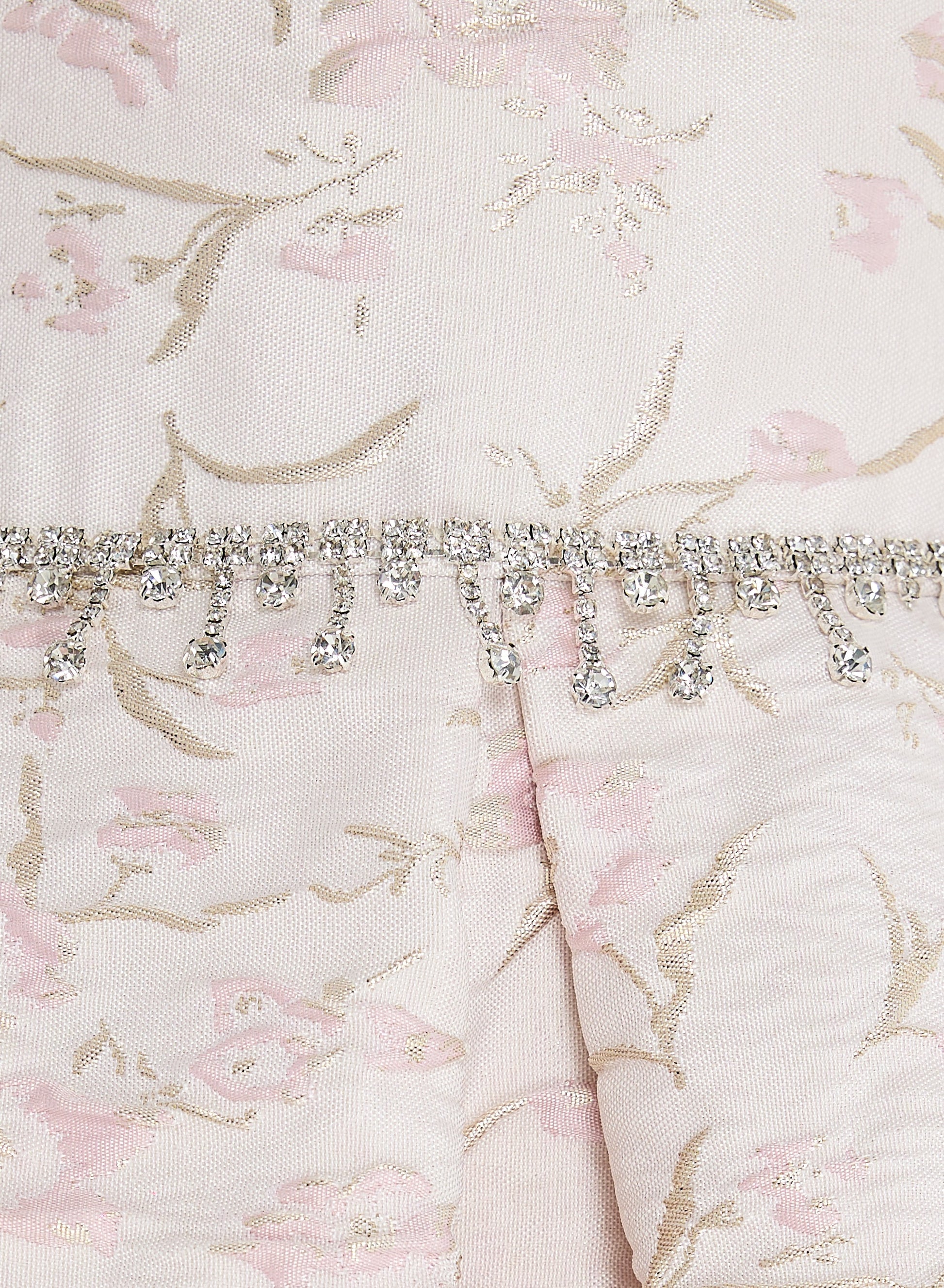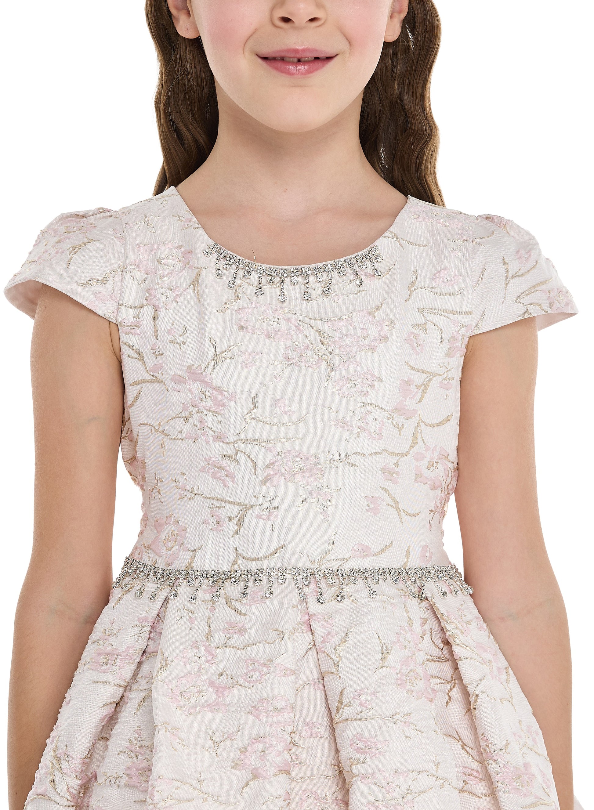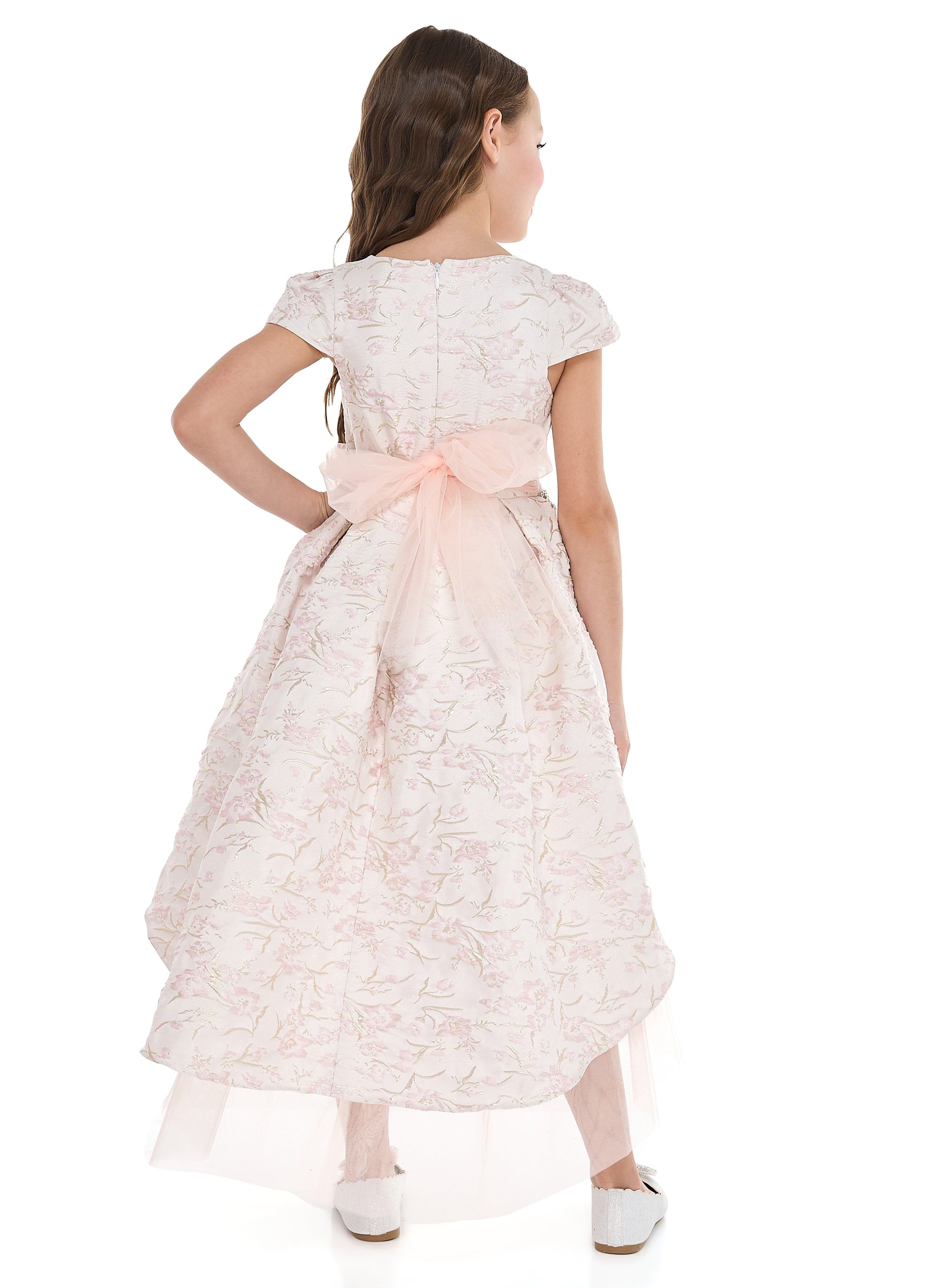 Pink/Gold Jacquard High Low Tail Dress With Tulle Mesh