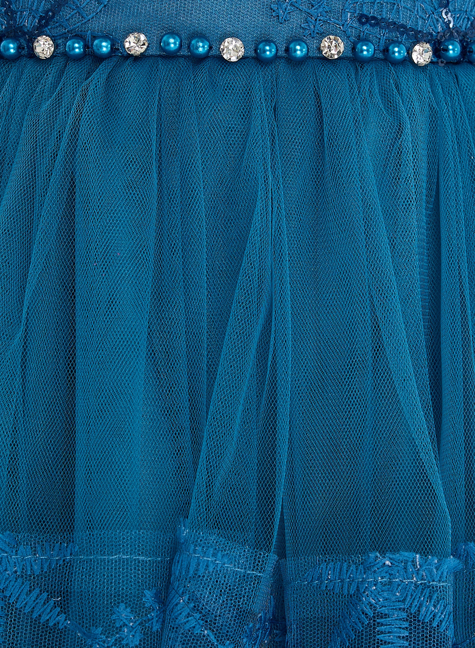 Elegant Blue Tulle Dress With Lace And Sequins