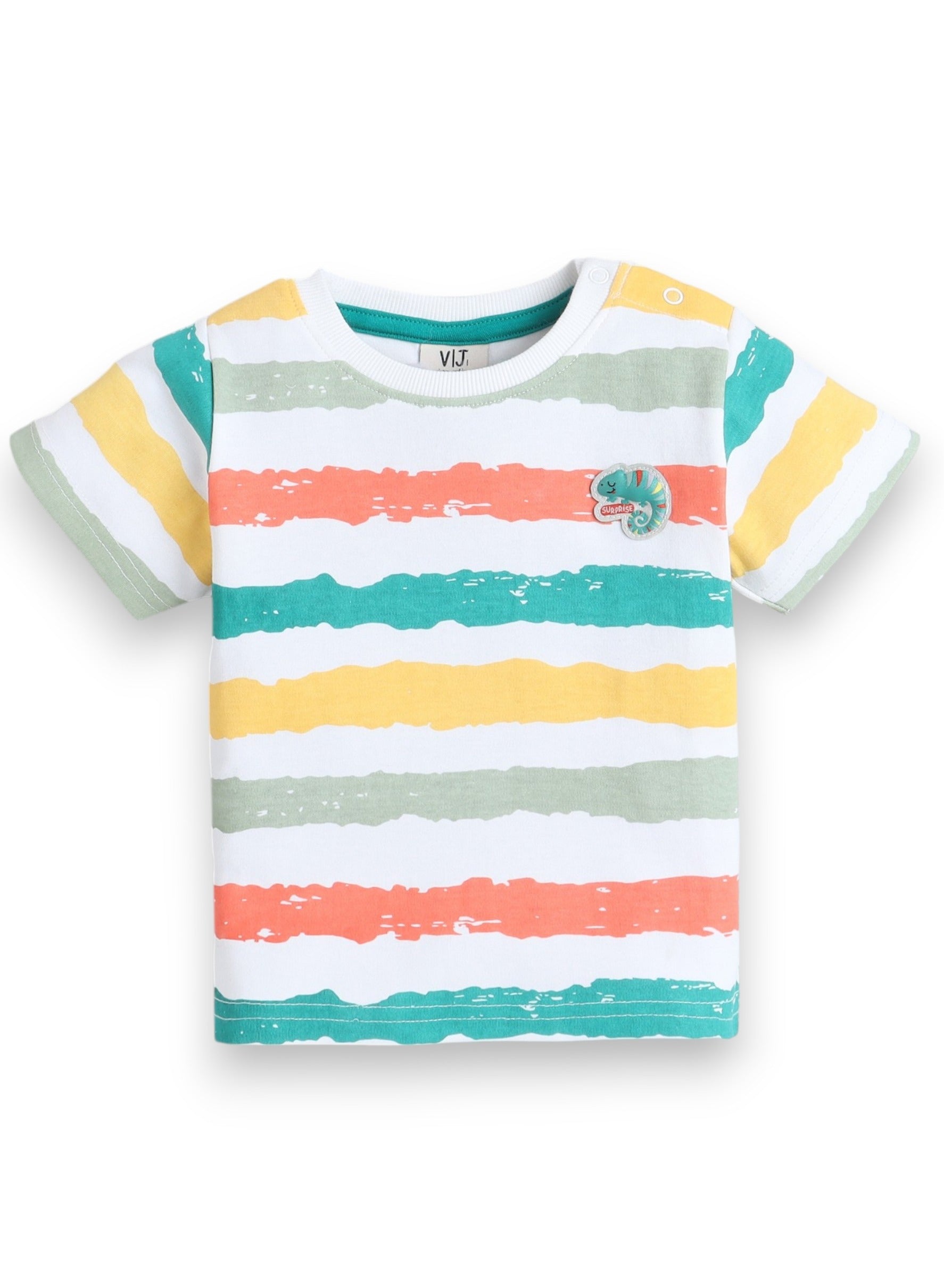 Victor and Jane Infant 2PC Set, Multicolor Striped T-Shirt And Green Shorts