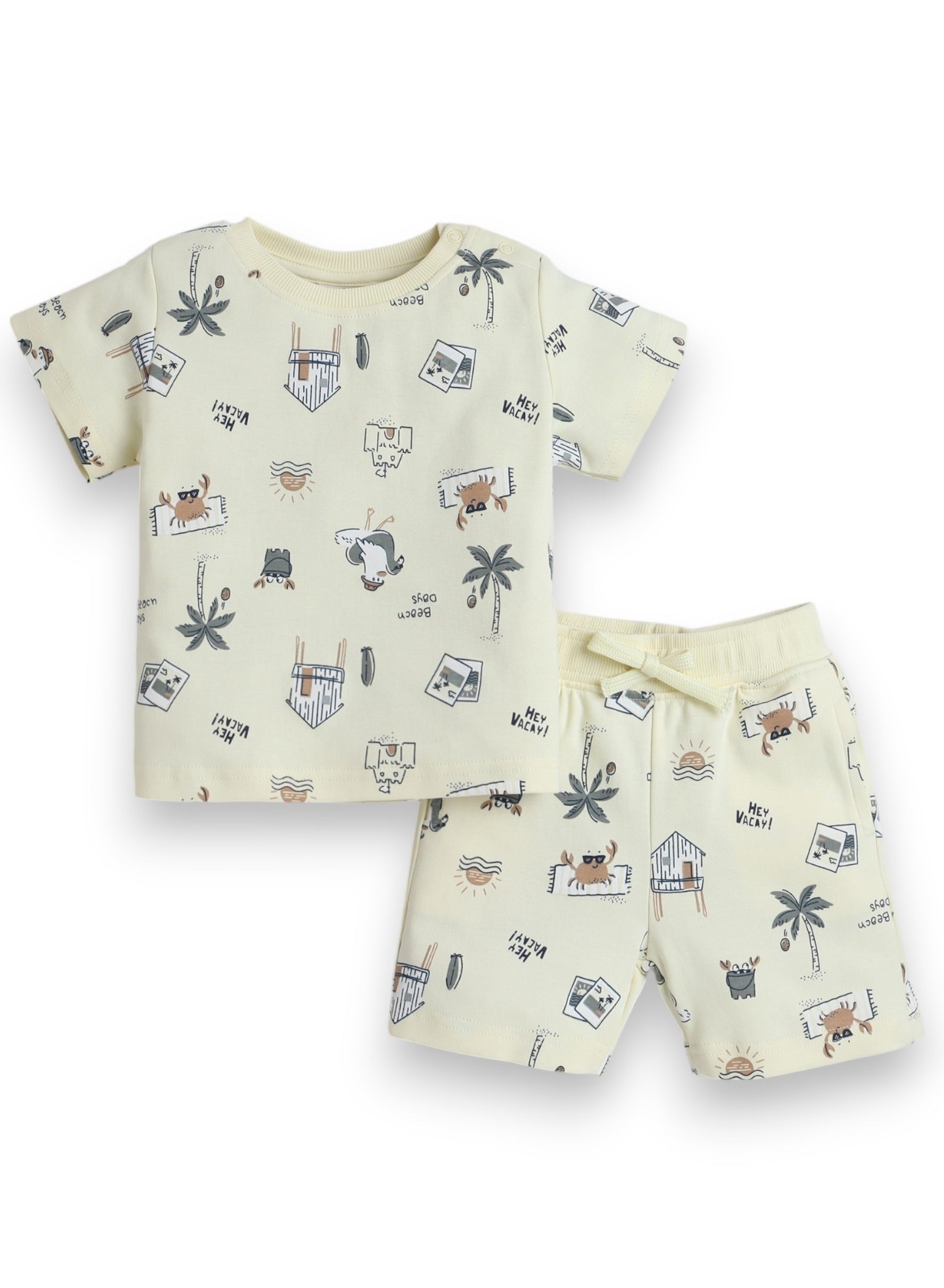Victor and Jane Boys' Off White and Blue T-Shirt and Shorts Set