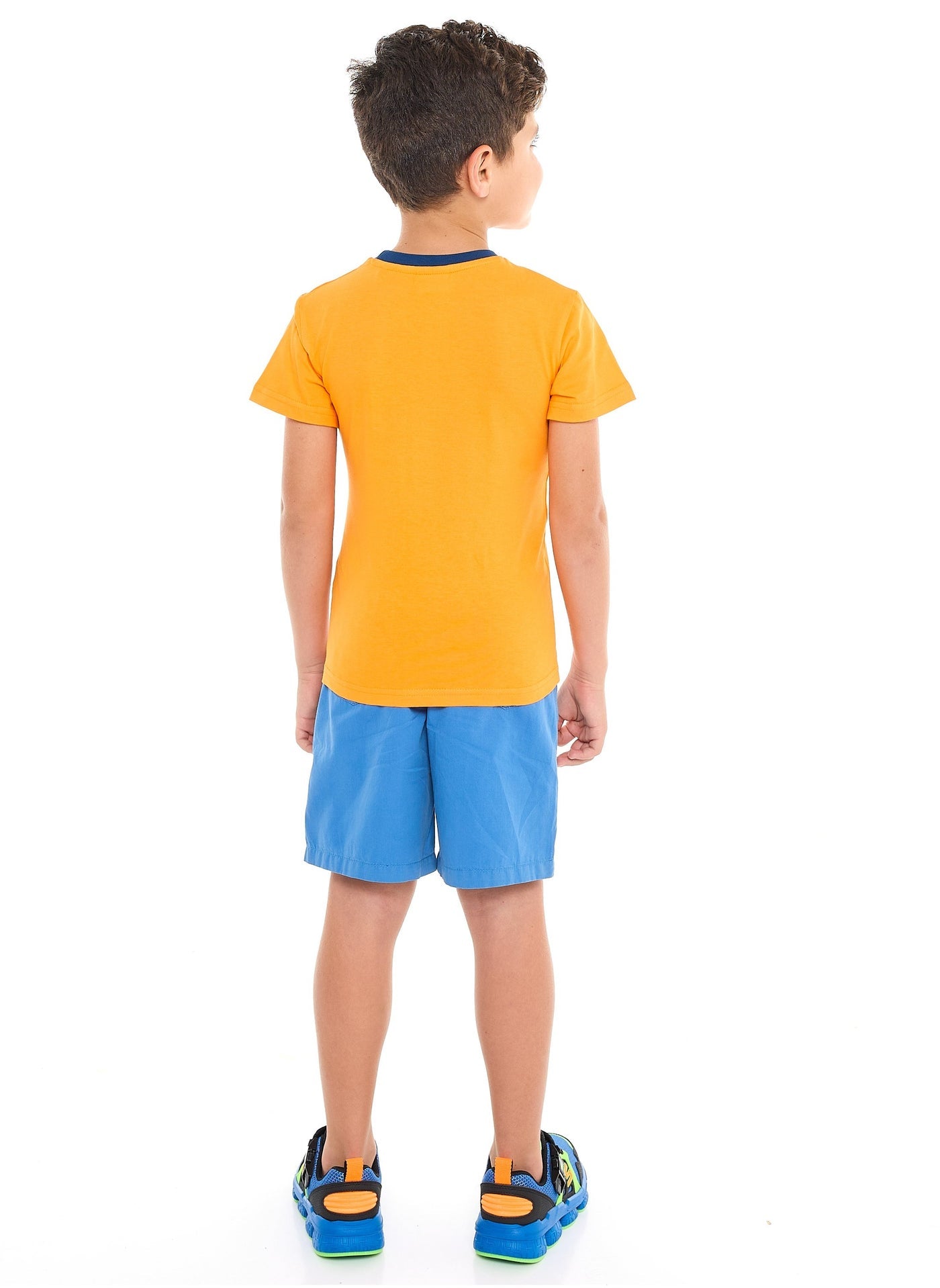 Victor and Jane Classic Blues and Orange Cotton T-Shirt & Pull-On Shorts Set