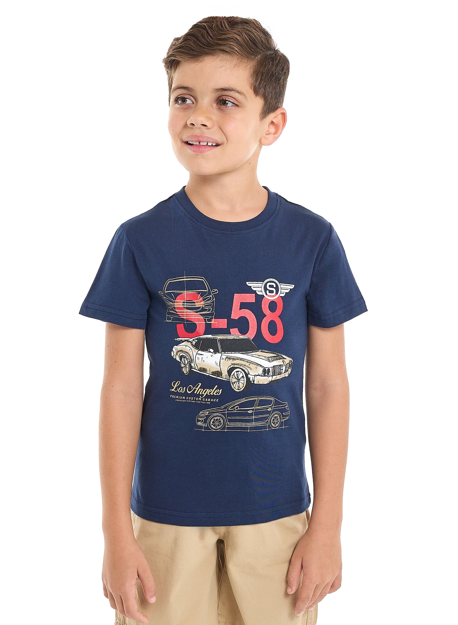 Victor and Jane Classic Navy and Khaki Cotton T-Shirt & Pull-On Shorts Boys Set
