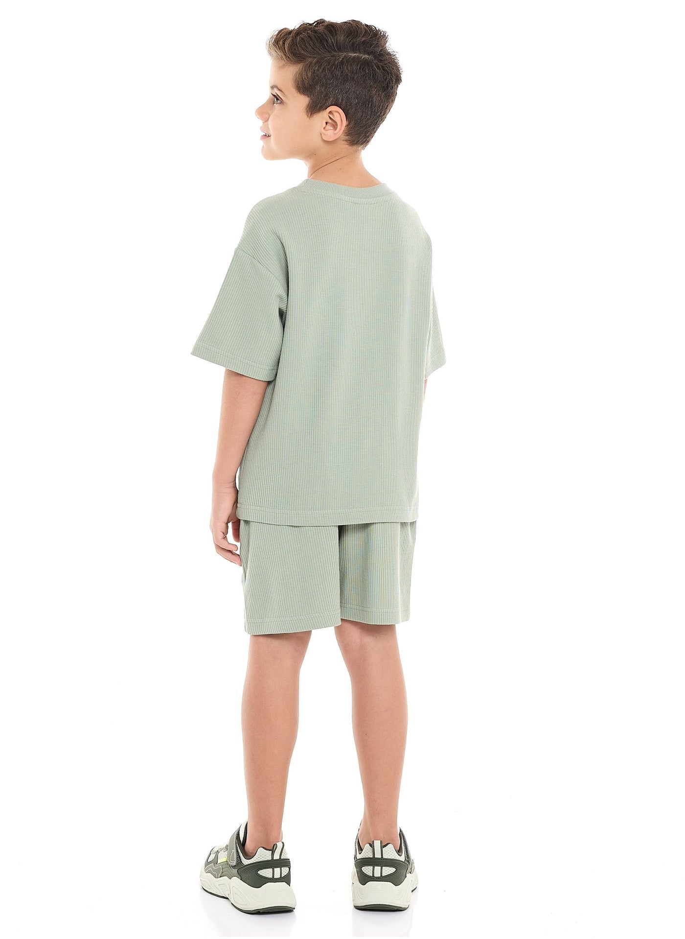 Victor and Jane Boys' Jacquard Olive 2-Piece Outfit with Shirt & Shorts