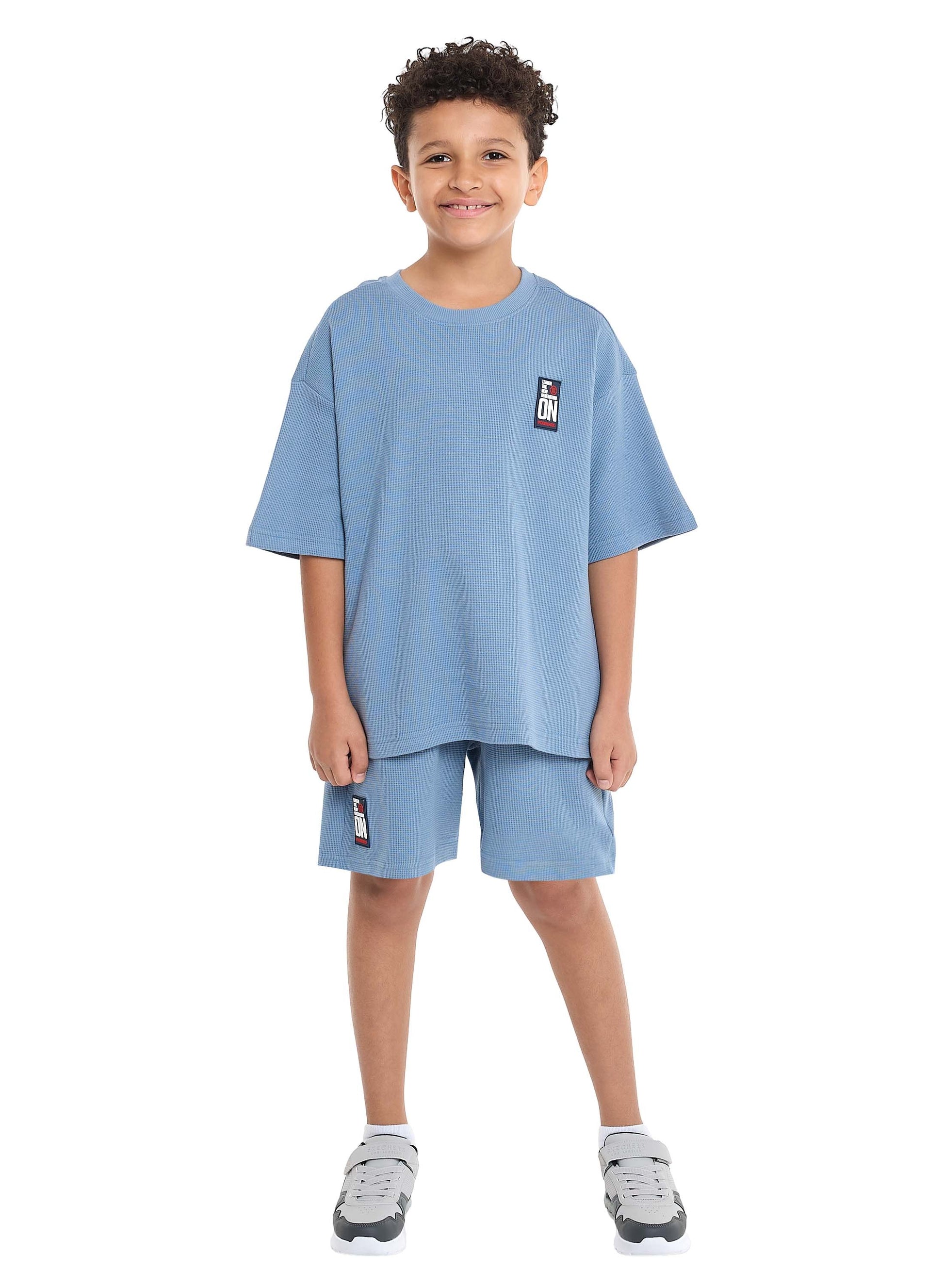 Victor and Jane Boys' Cord Set – Light Blue T-Shirt and Shorts Outfit with Label detail