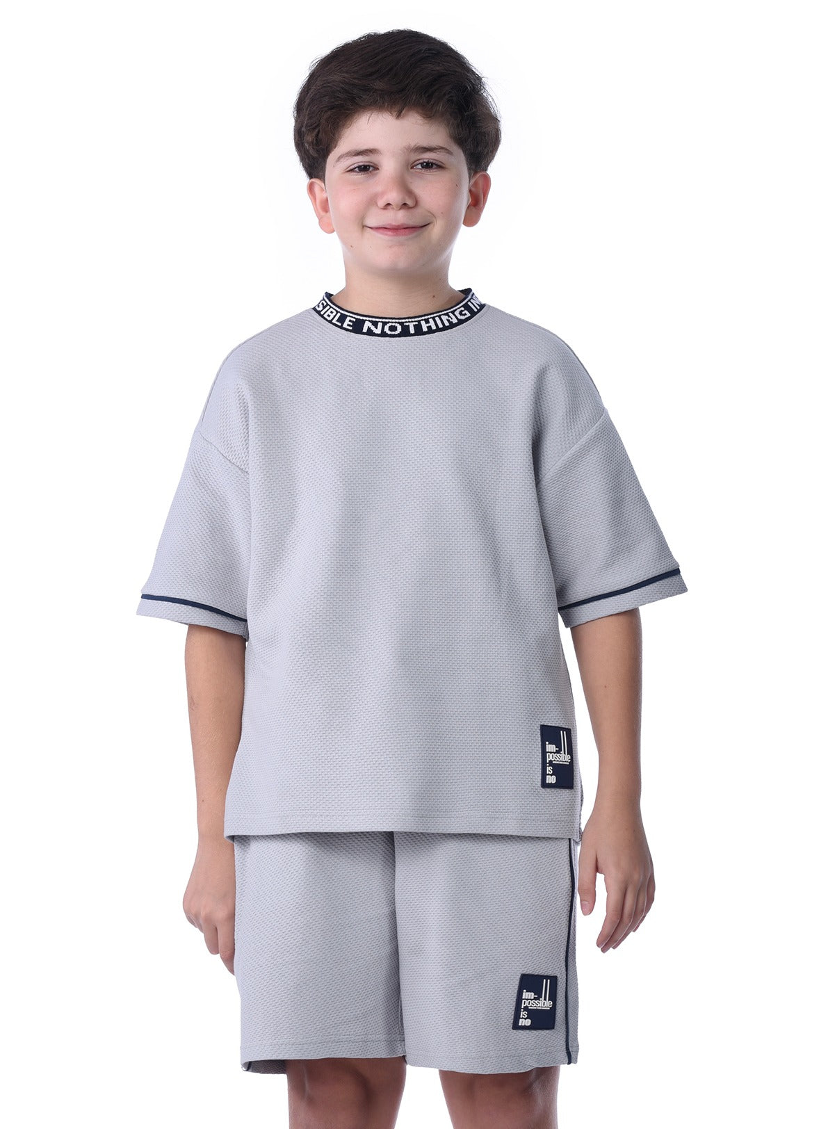 Victor and Jane Boys' Jacquard Set – Light Blue 2-Piece Outfit with Label Detail