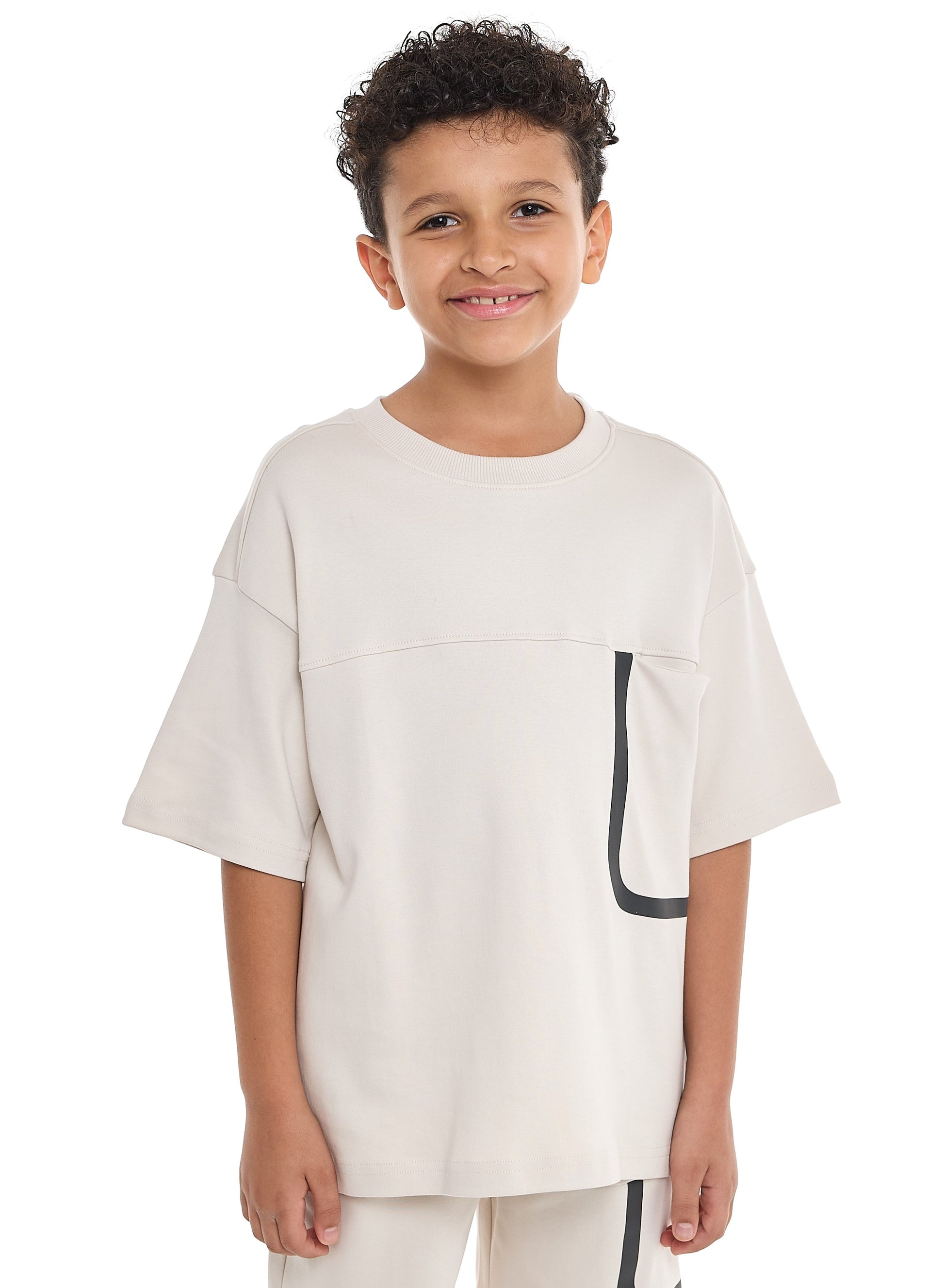 Victor and Jane Sr Boys' Jacquard Set – Striped Textured Set with Pocket detail- Beige