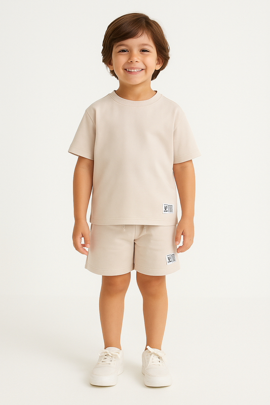 Boys Cotton Interlock Tee & Shorts Set – Sand