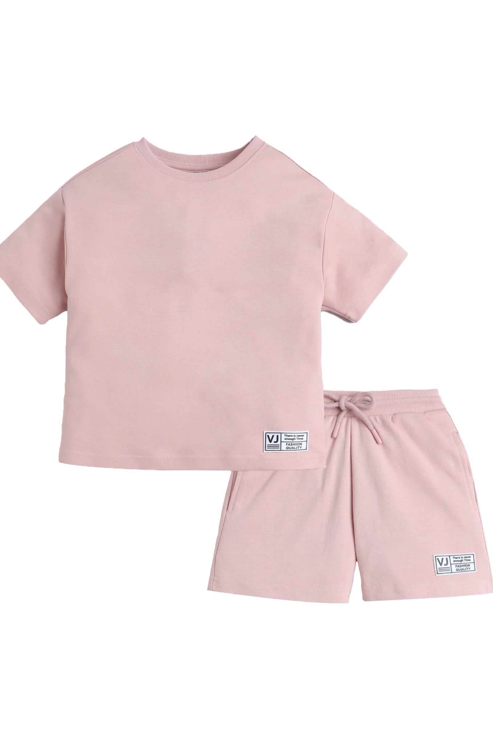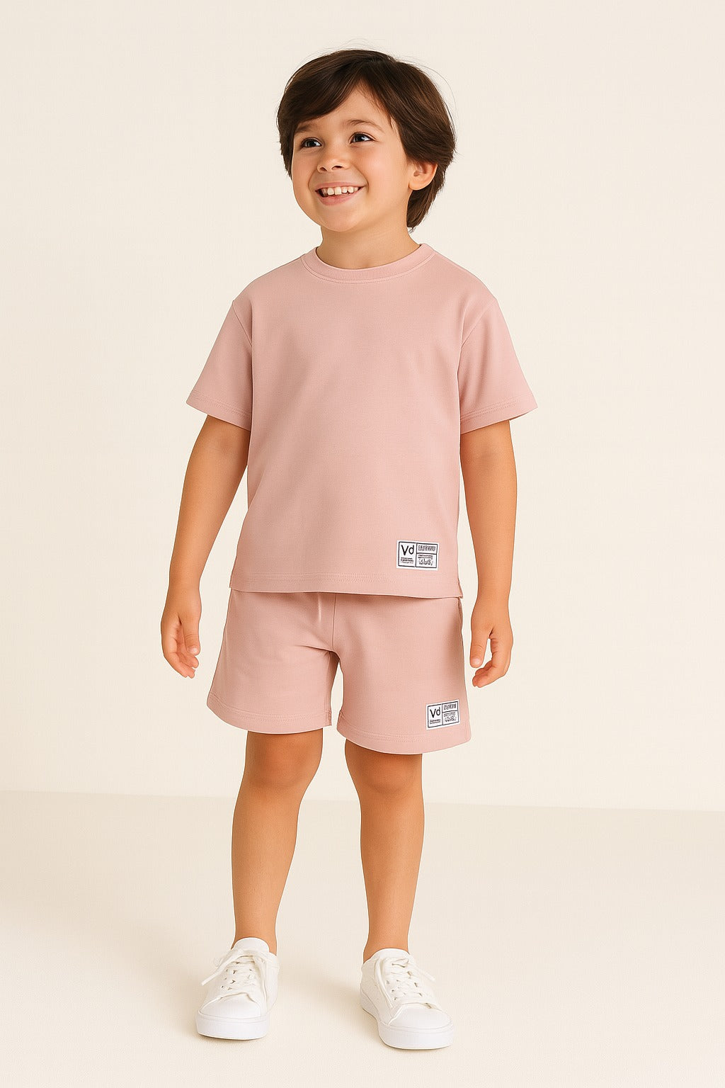 Boys Cotton Interlock Tee & Shorts Set – Peach