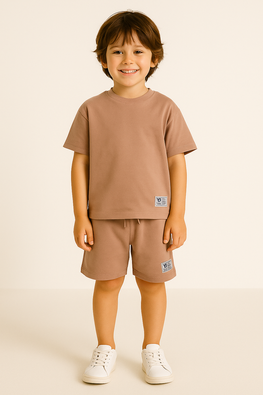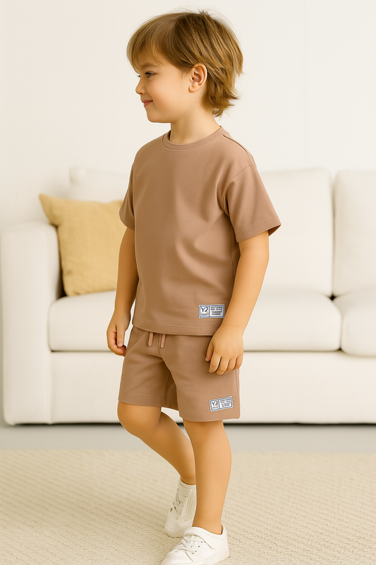 Boys Cotton Interlock Tee & Shorts Set – Khaki