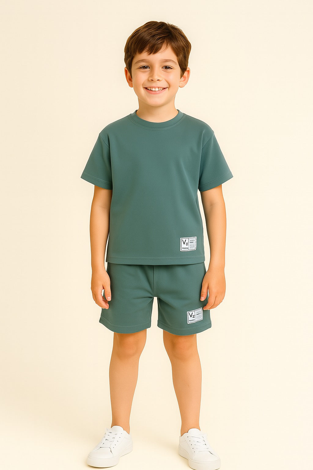 Boys Cotton Interlock Tee & Shorts Set – Sage Green