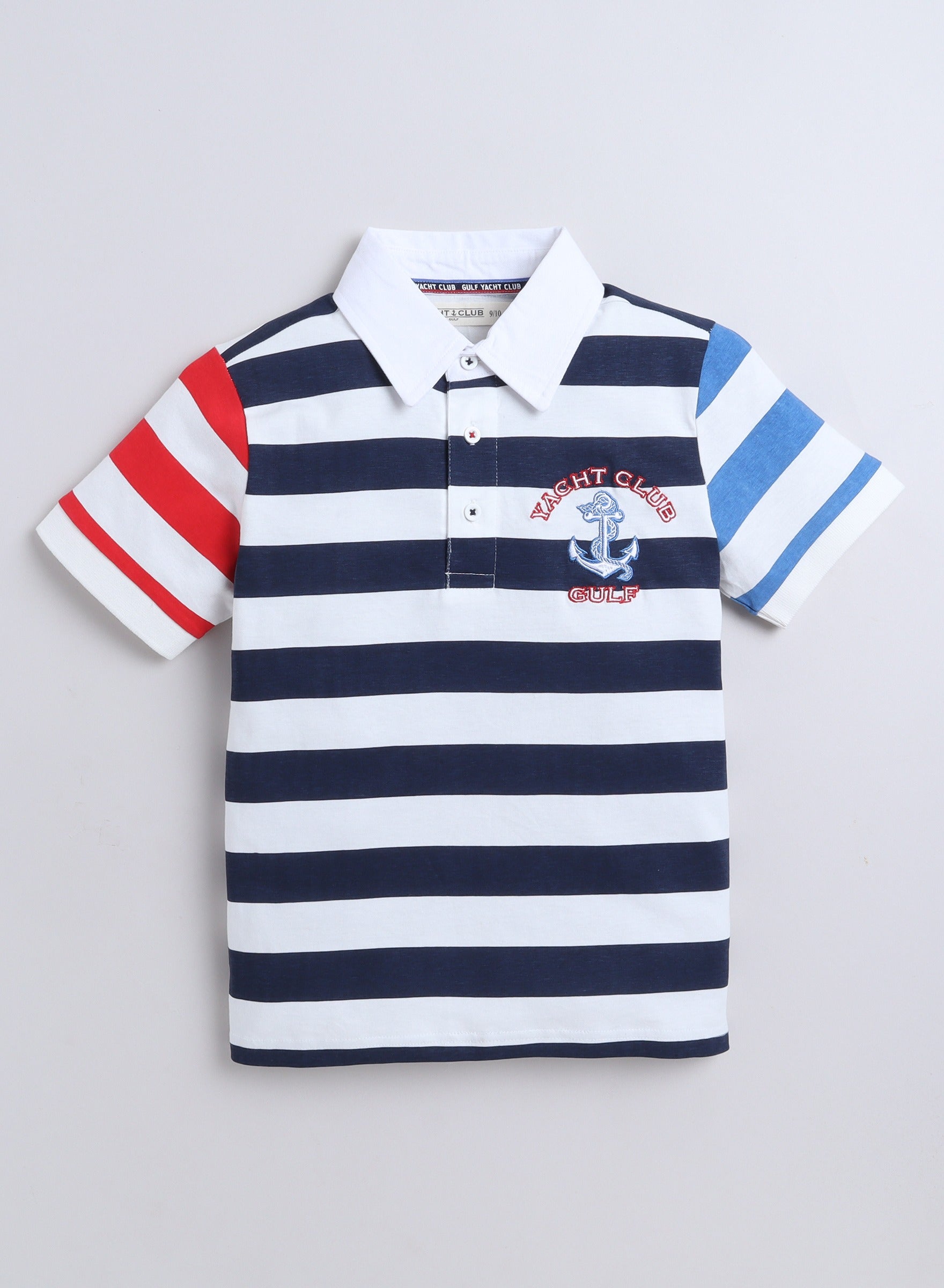 Victor & Jane Striped Polo T-Shirt, Comfortable Cotton Casual Wear for Boys