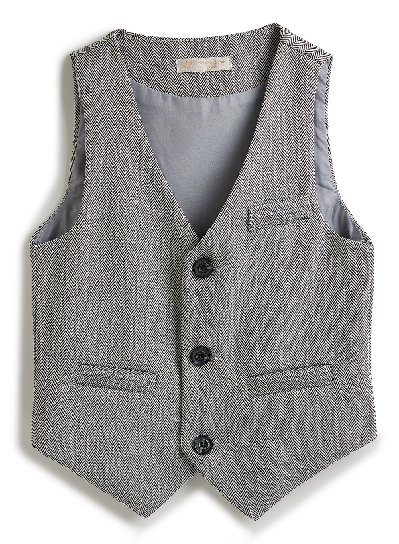 Grey Herringbone Waistcoat And Pant Set With Shirt And Tie