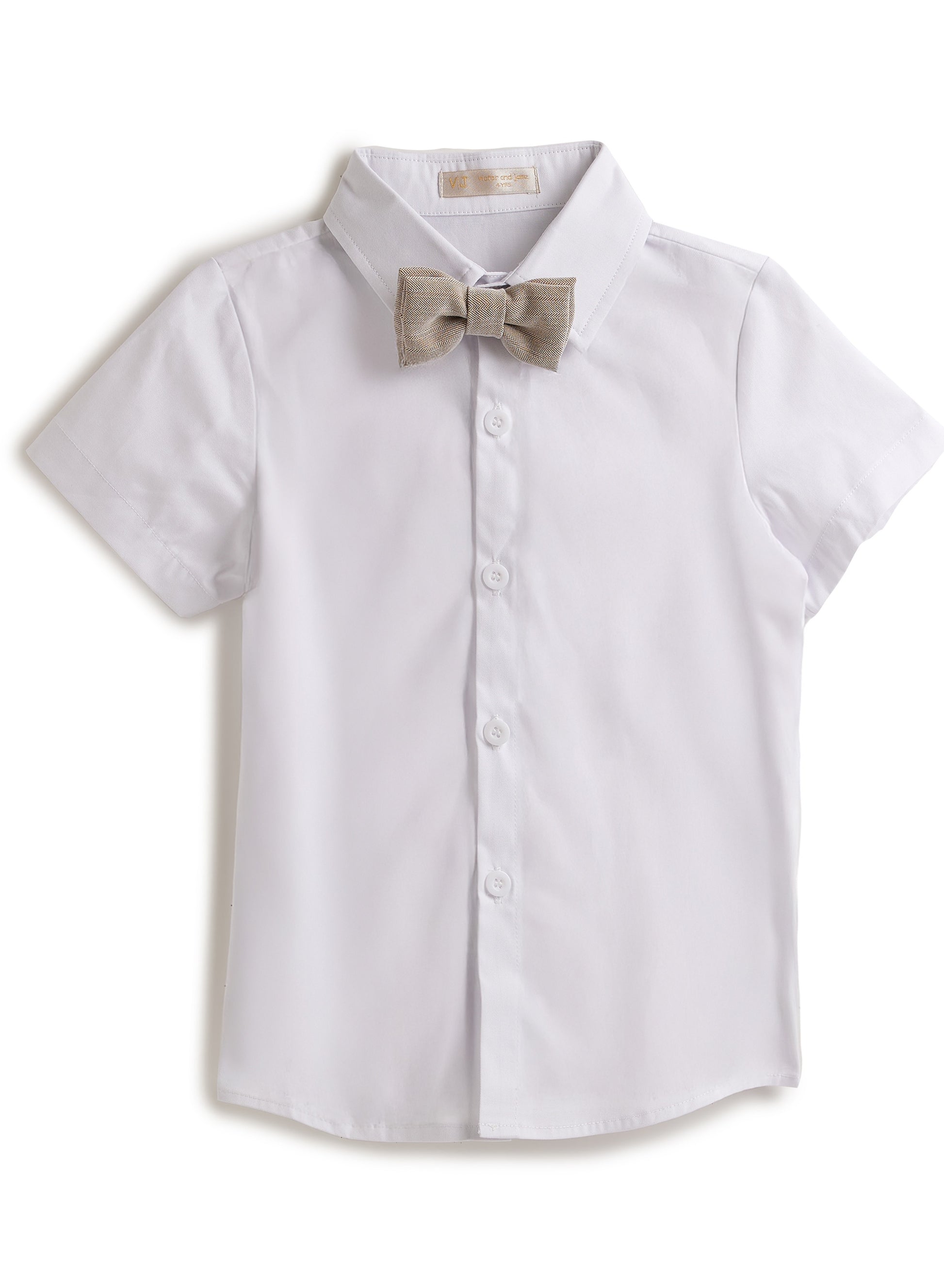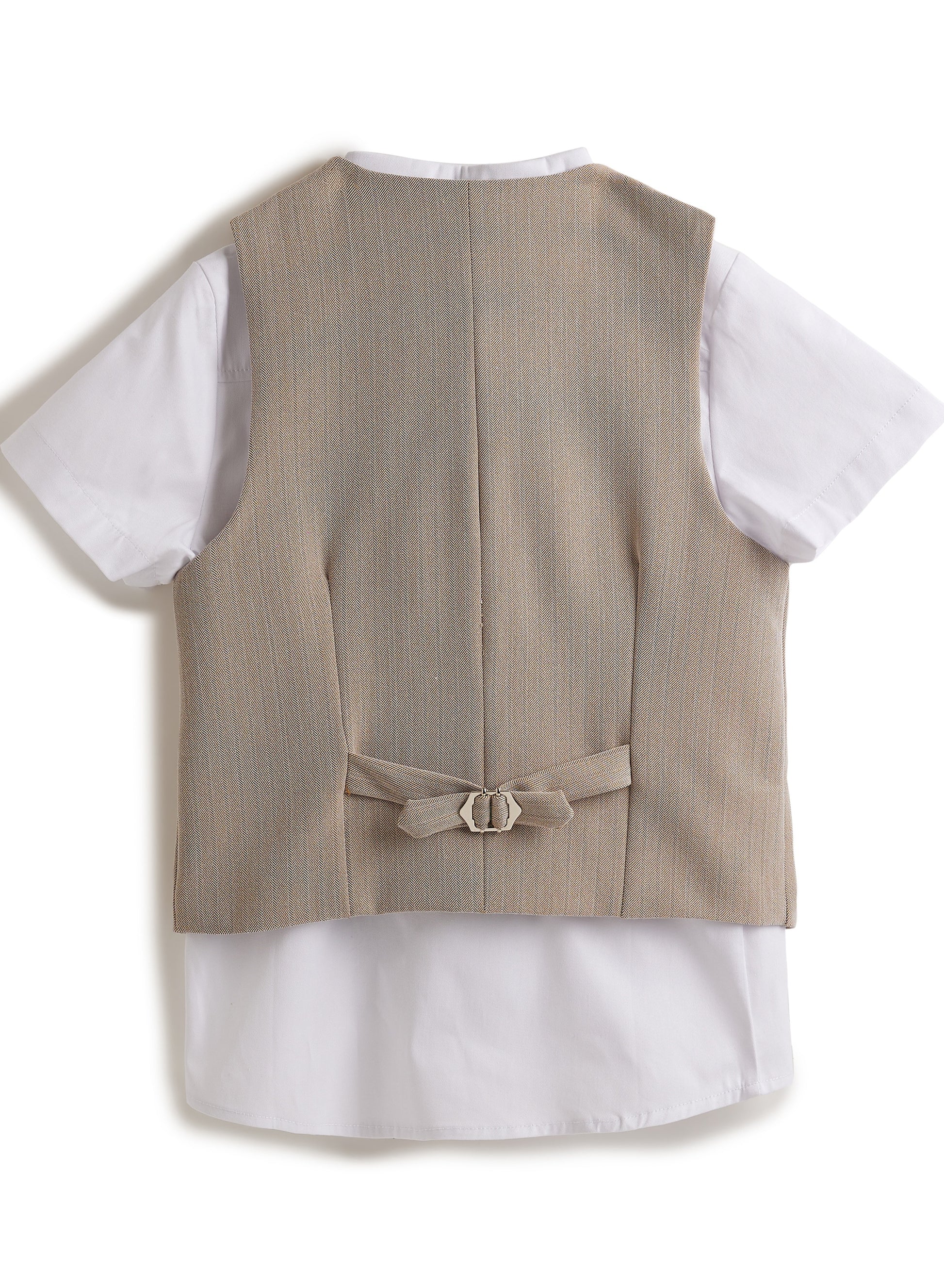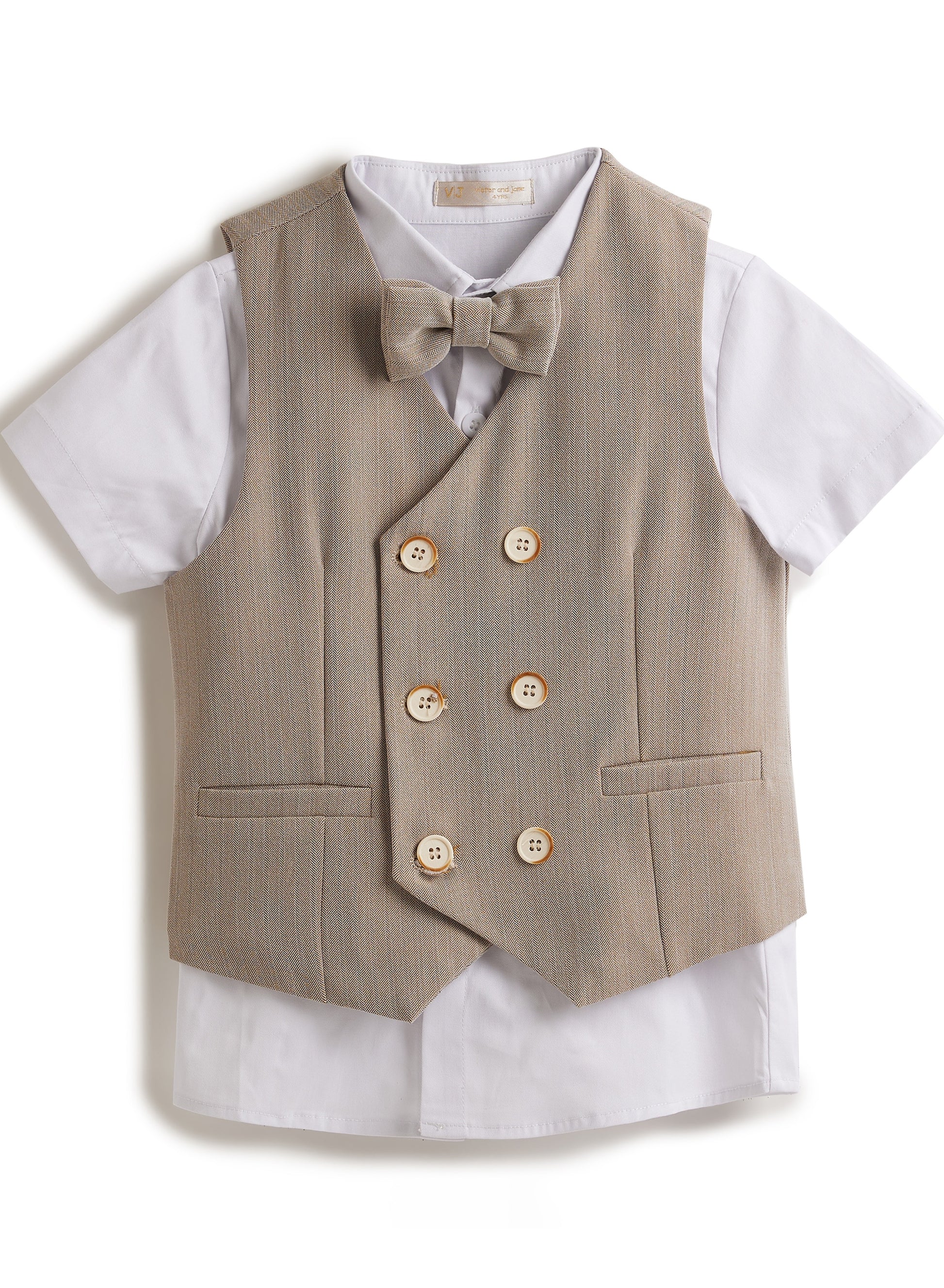 Neutral/Beige Waistcoat And Short Set With Shirt And Bow Tie