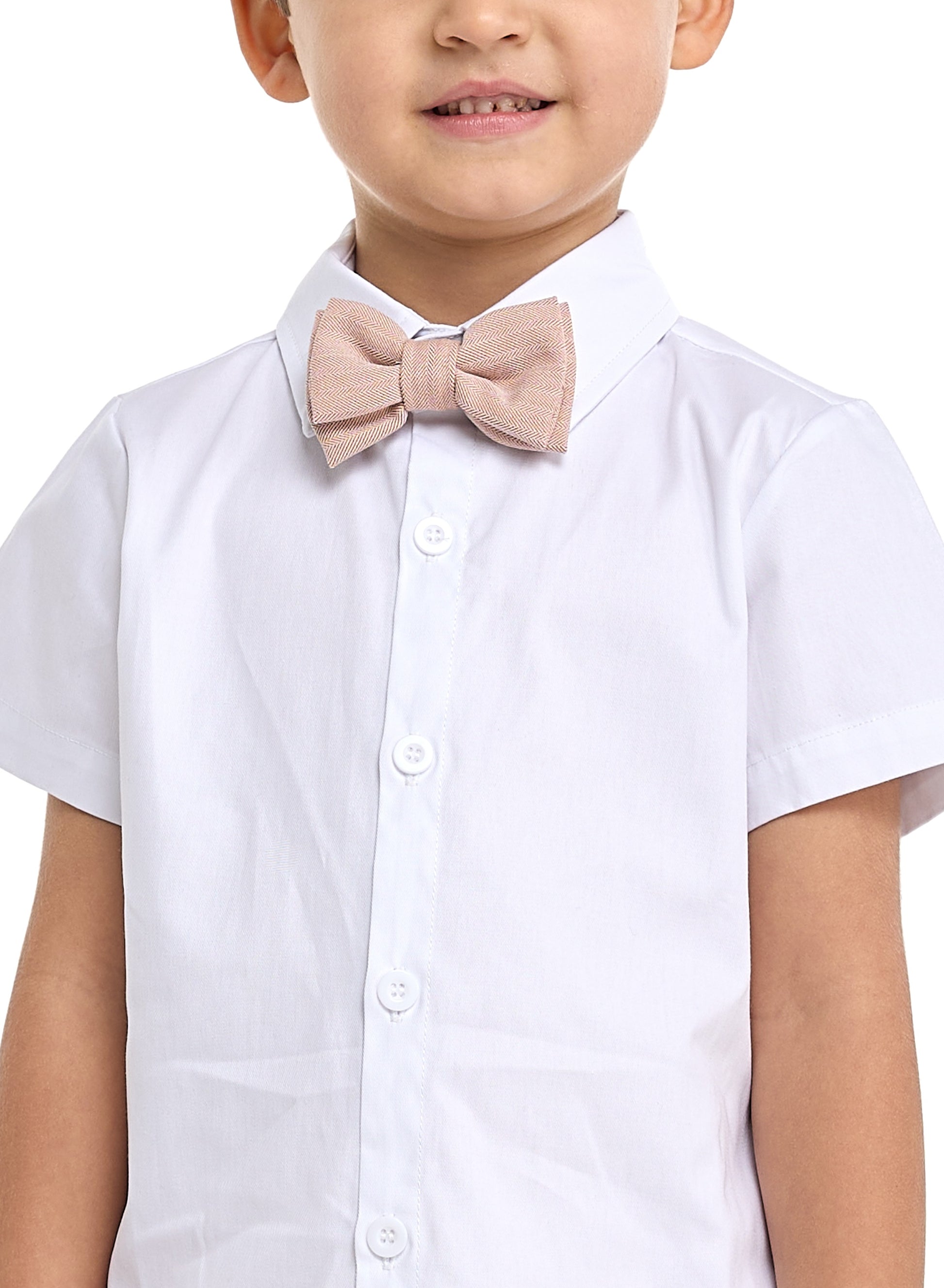 Salmon Color Waistcoat And Short Set With Shirt And Bow Tie
